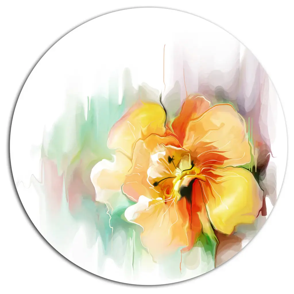 Beautiful Yellow Flower Drawing, Floral Round Metal Wall Art, 38"