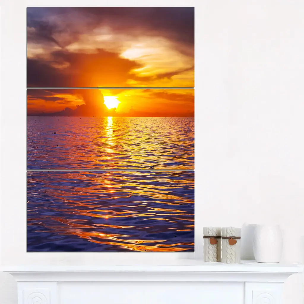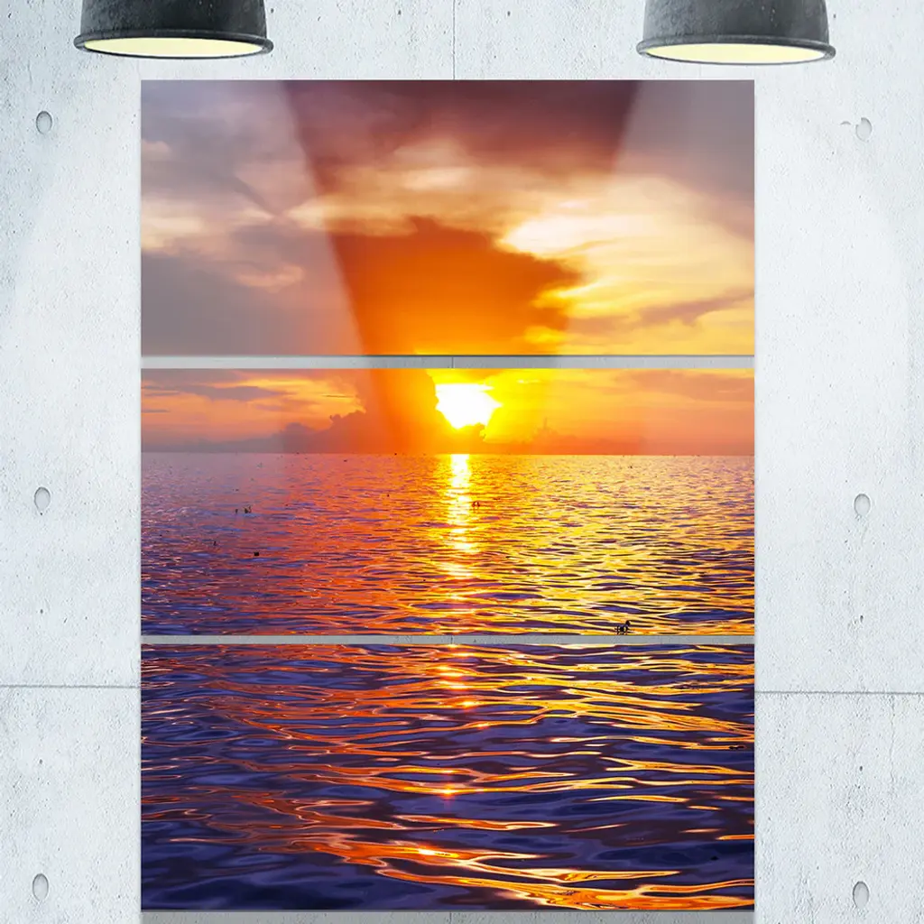 "Beautiful Yellow Sky At Gloomy Beach" Metal Wall Art, 3 Panels, 28"x36"