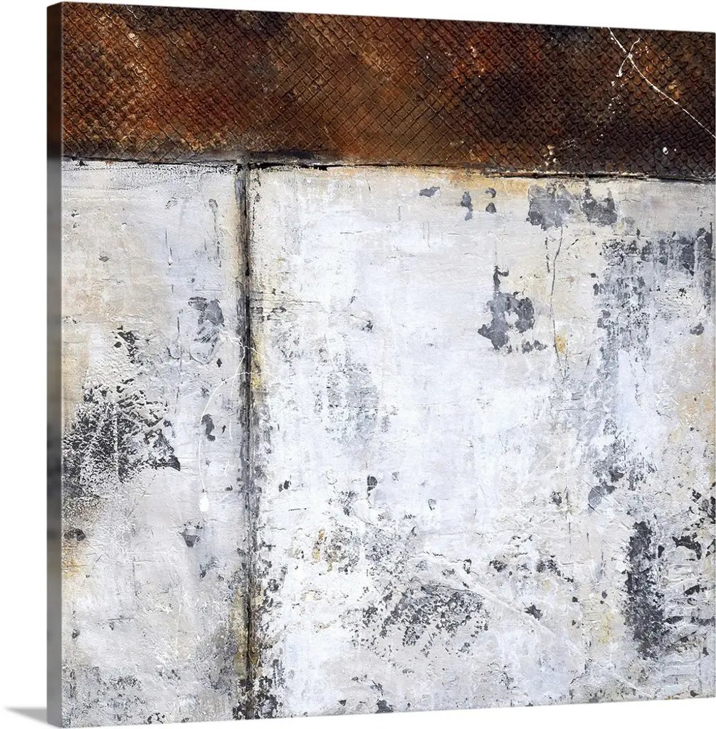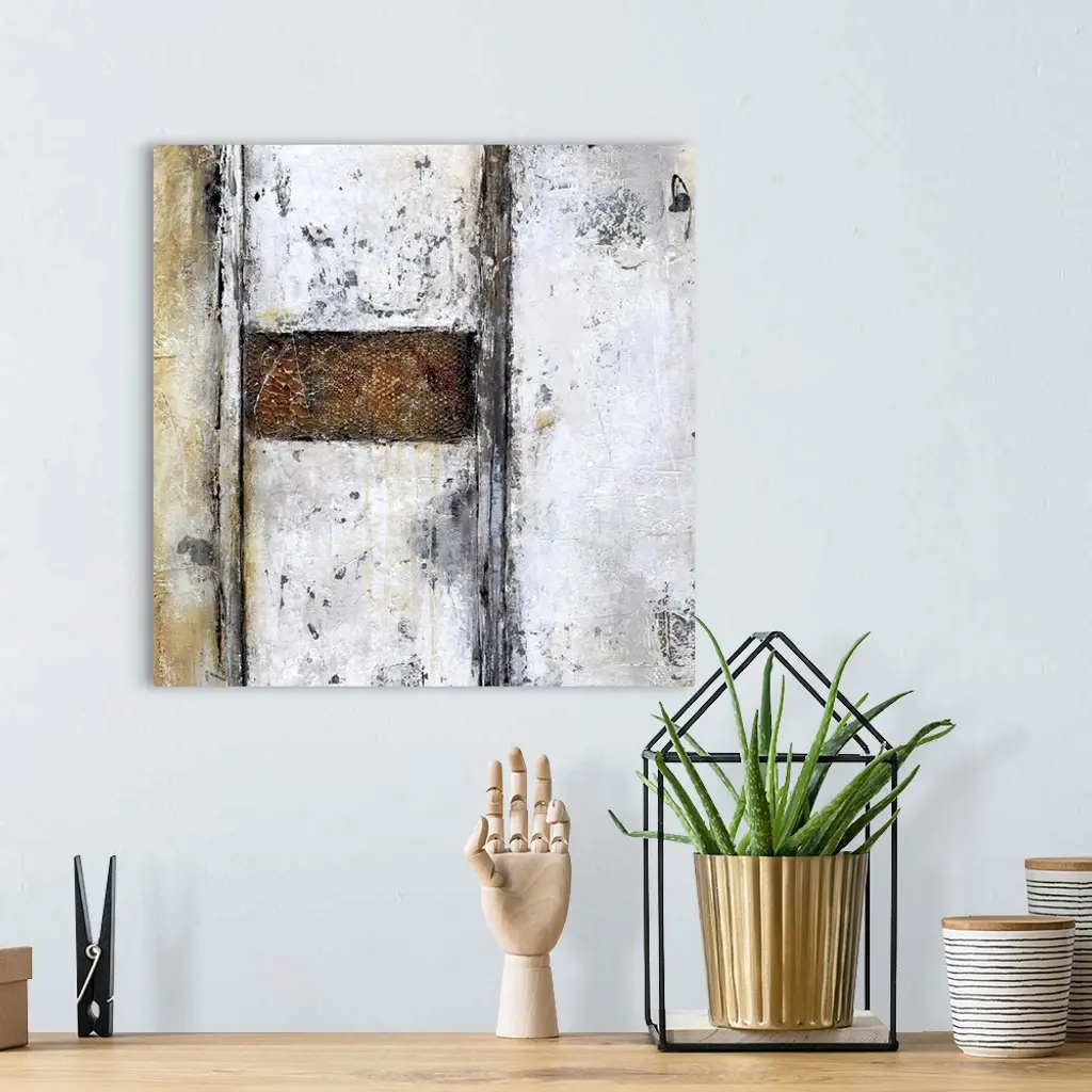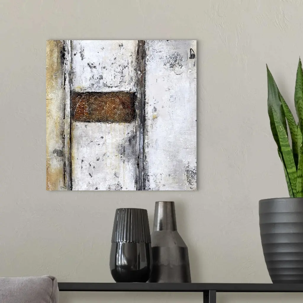 A contemporary abstract painting using geometric shapes and neutral tones.