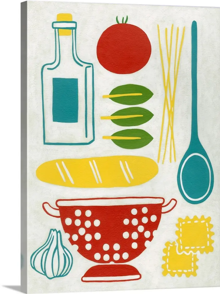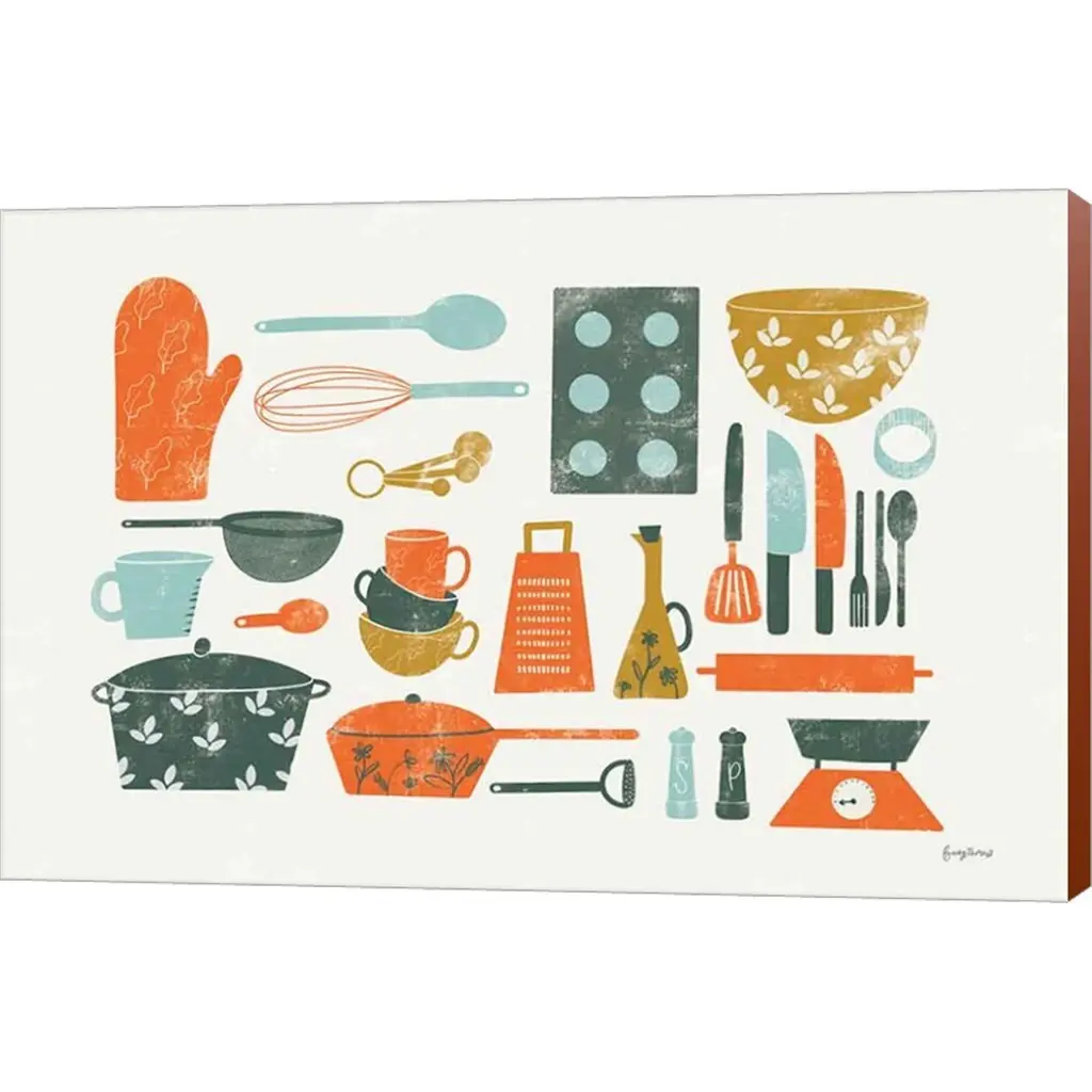 Retro Kitchen I by Becky Thorns is a high quality piece of canvas artwork. The finished size of this piece is 24" X 16", and it has a depth 1.5" with cinnamon painted sides. There is a UV protective coating over the entire image, and it is ready to hang on your wall with no hardware required. 100% Satisfaction Guaranteed.