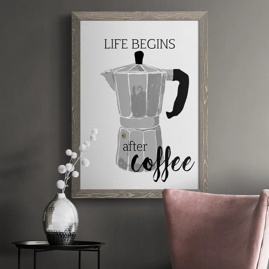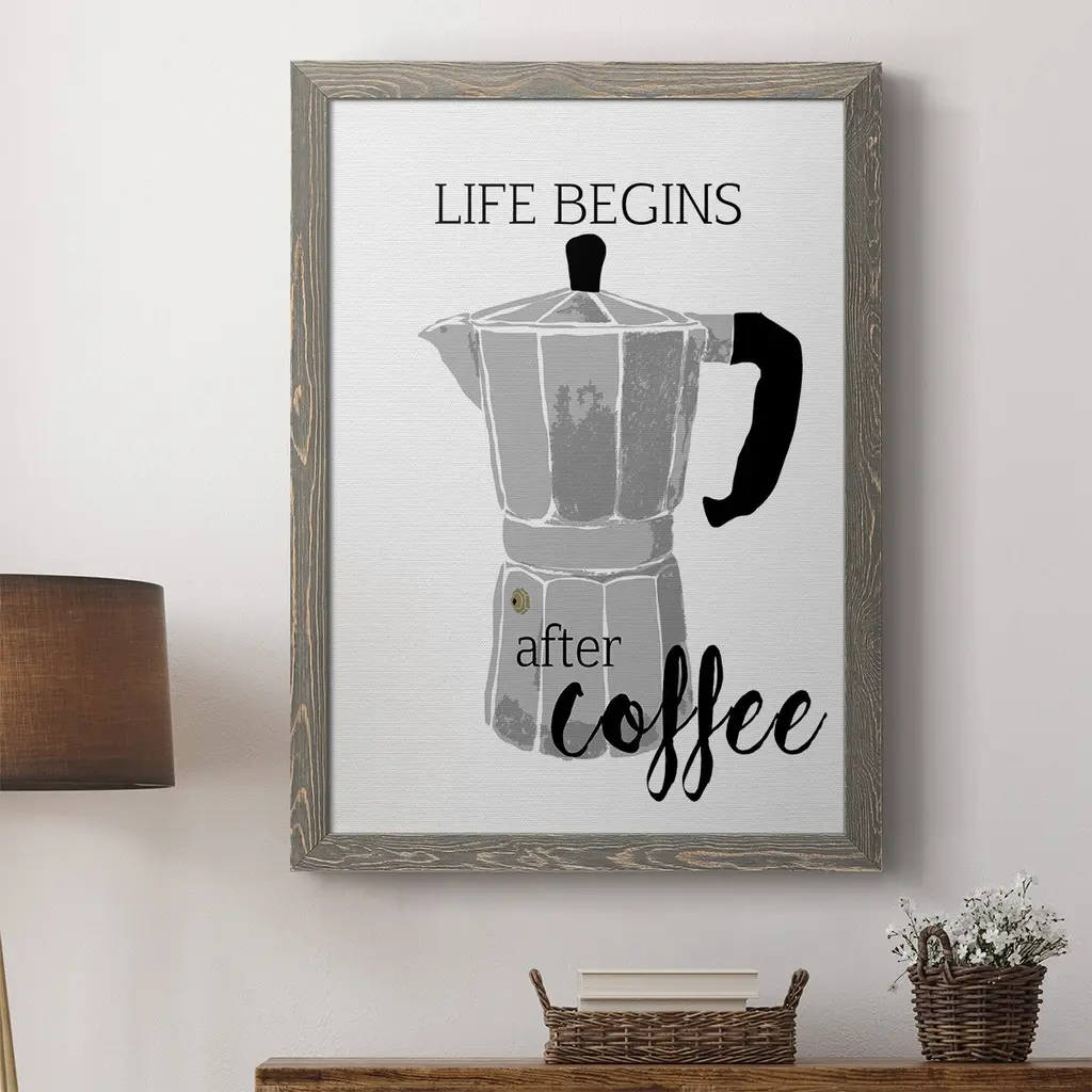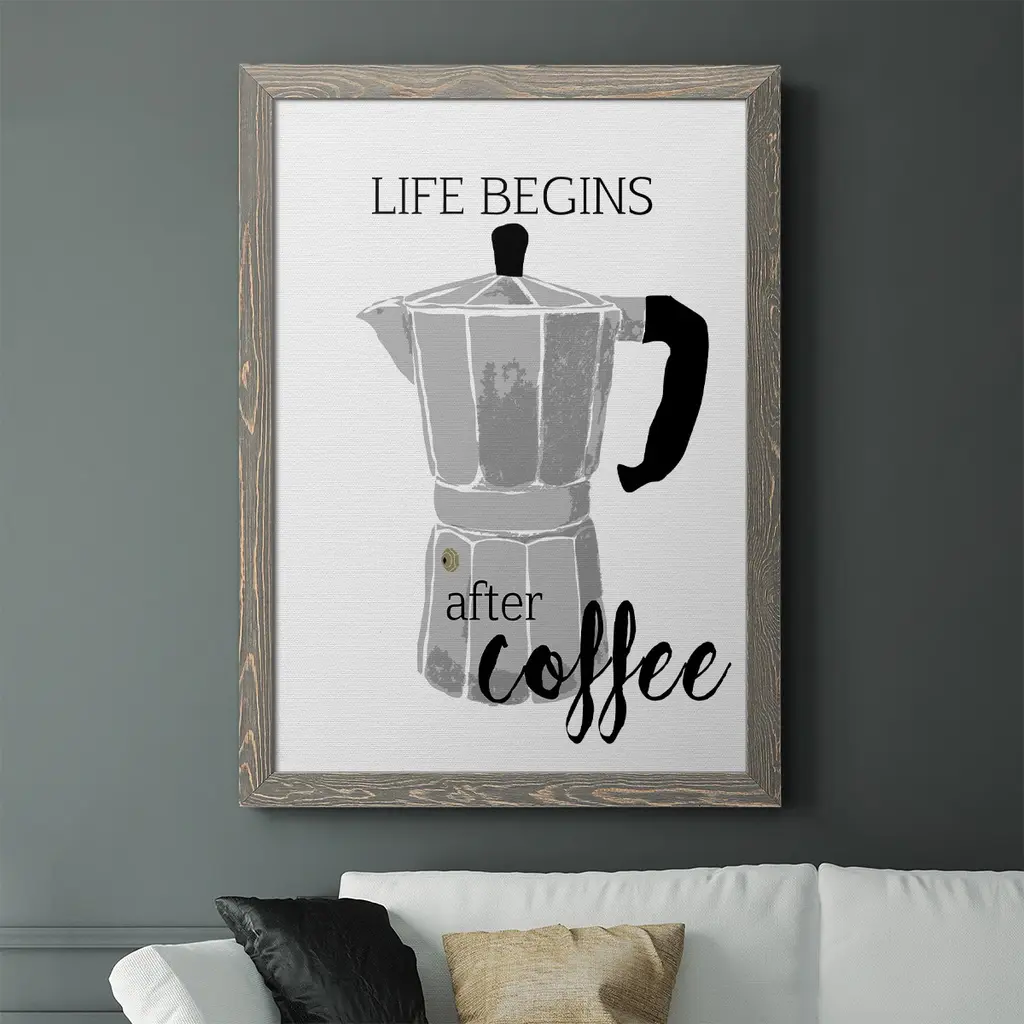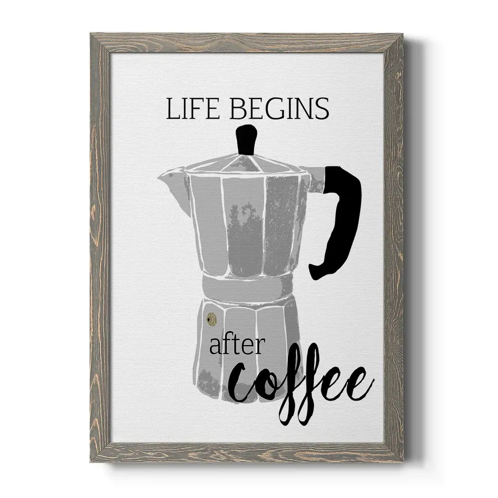 Begins After Coffee-Premium Framed Canvas - Ready To Hang - 31.5x43.5 - Walnut