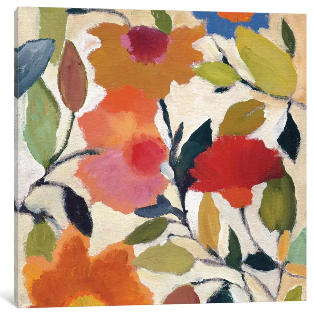The artwork is crafted with 100-percent cotton artist-grade canvas, professionally hand-stretched and stapled over pine-wood bars in gallery wrap style - a method utilized by artists to present artwork in galleries. Fade-resistant archival inks guarantee perfect color reproduction that remains vibrant for decades even when exposed to strong light. Add brilliance in color and exceptional detail to your space with the contemporary and uncompromising style of iCanvas. Orientation : Square Shape : Square Artist : Kim Parker Height : 18 Width : 18Thickness : 1.5Product Type :Gallery wrapped canvas artNew :Ready to be displayed right out of the box, including free hanging accessories and instructions for a quick and easy hanging process that achieves the best positioning results.Quality Wood Bars :Shrink-resistant wooden-bar frame with tensioning wedges that allow for tightening of the canvas from the reverse side.Dependent and Fast:Produced by the largest US canvas art supplier.