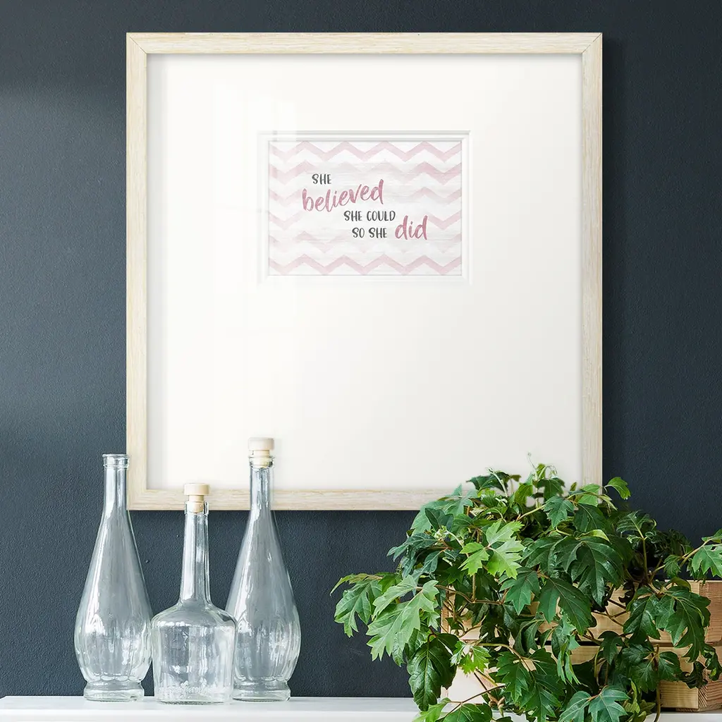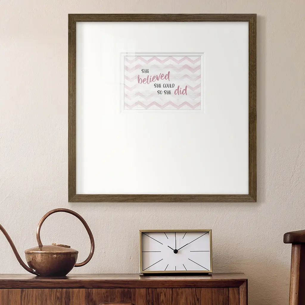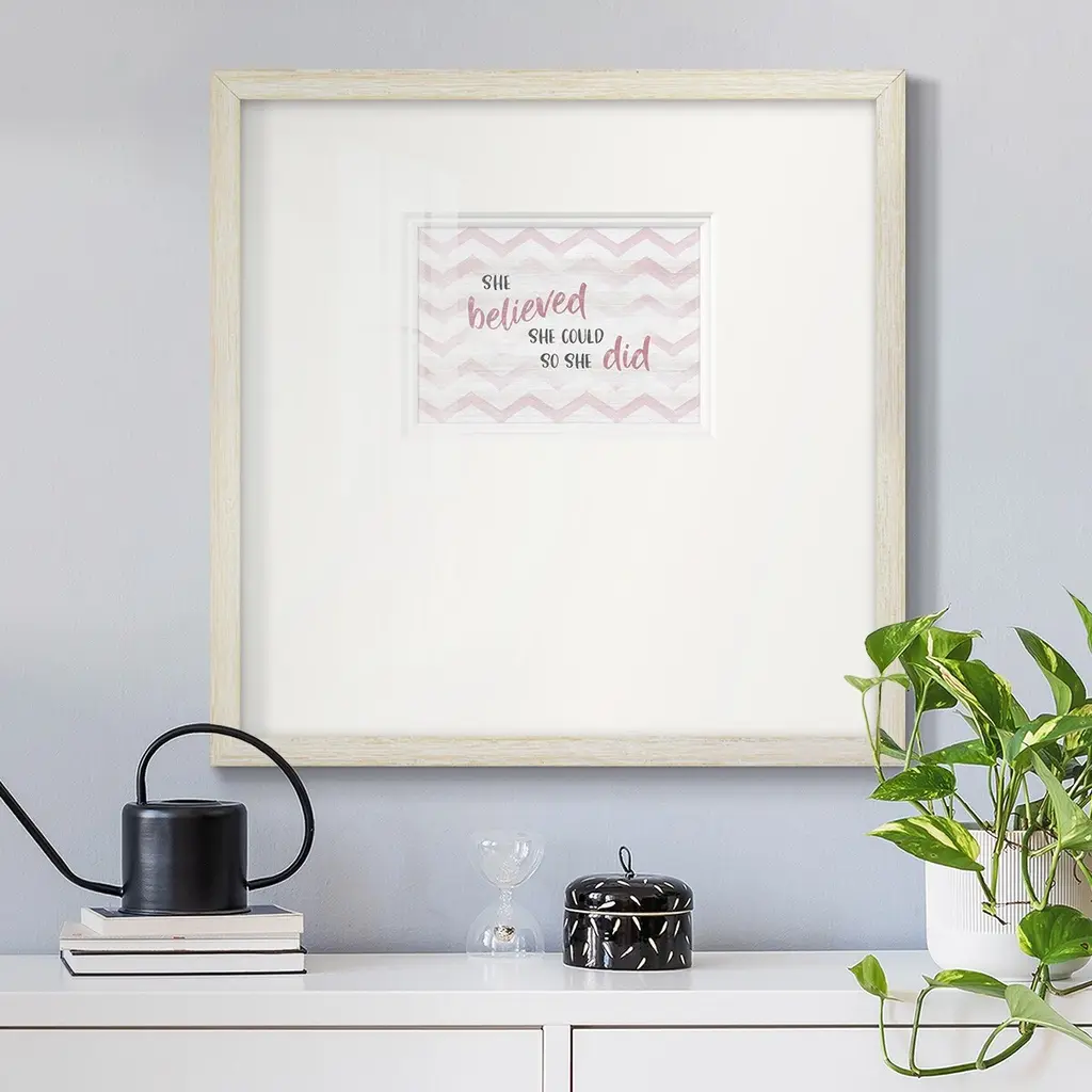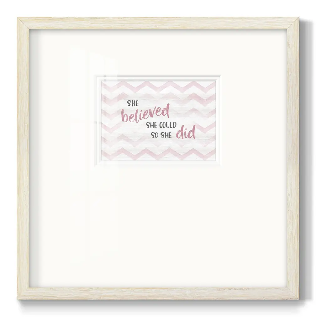 Believed She CouldPremium Framed Print A framed cold pressed paper print featuring superior double matting and quality frame. 2 SIZES AVAILABLE 16''X16''' - Overall Size 20''X20''' - Overall Size Each piece is made to order. Each piece comes with hanging hardware. Made in the USA Ready to Hang Giclee Paper Print Plexiglass Beveled Matt Board Double Matte Board