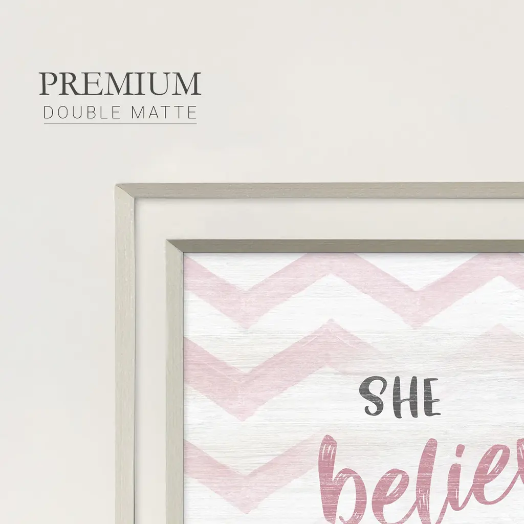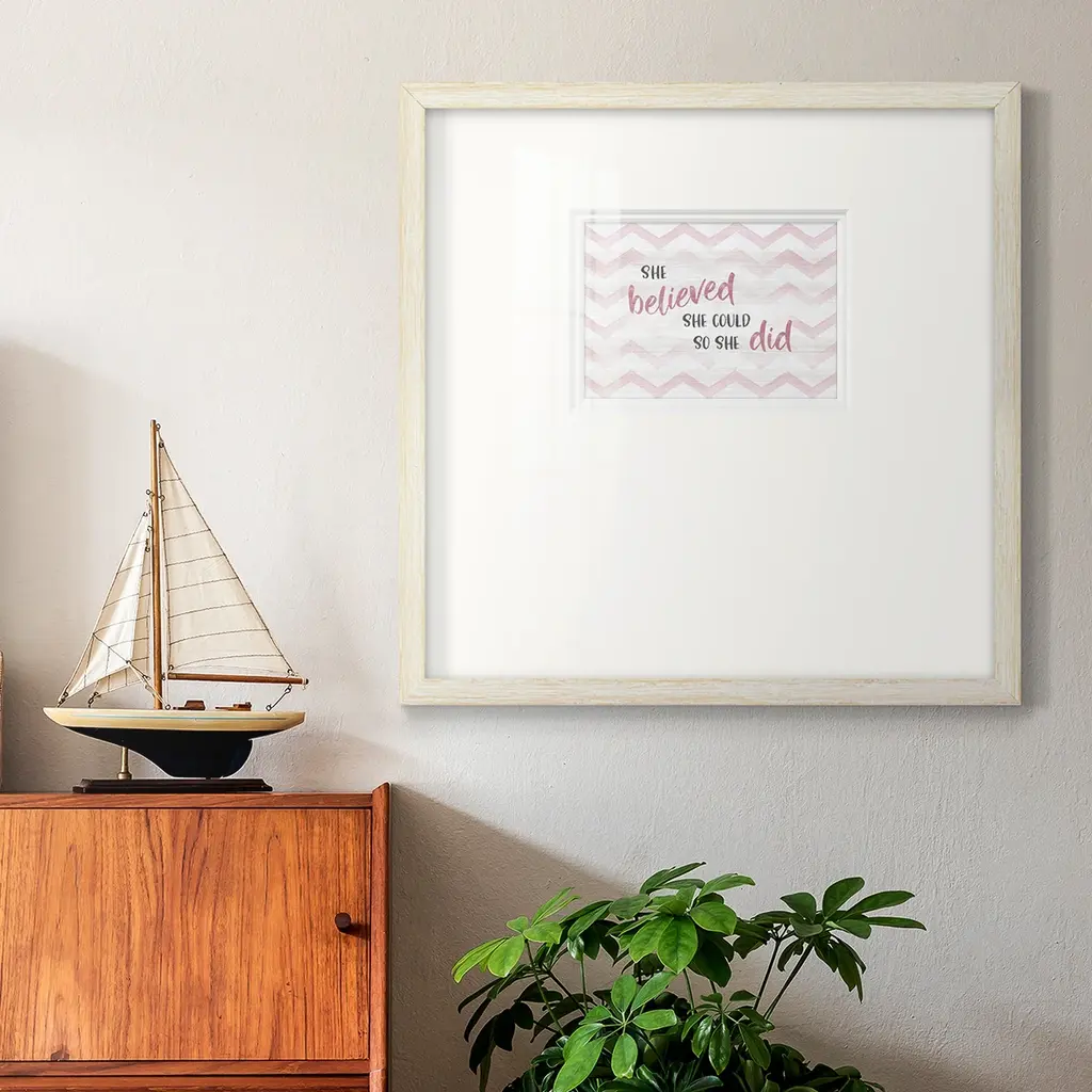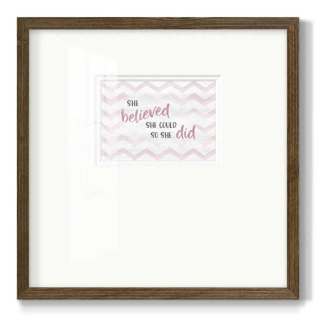 Believed She CouldPremium Framed Print A framed cold pressed paper print featuring superior double matting and quality frame. 2 SIZES AVAILABLE 16''X16''' - Overall Size 20''X20''' - Overall Size Each piece is made to order. Each piece comes with hanging hardware. Made in the USA Ready to Hang Giclee Paper Print Plexiglass Beveled Matt Board Double Matte Board