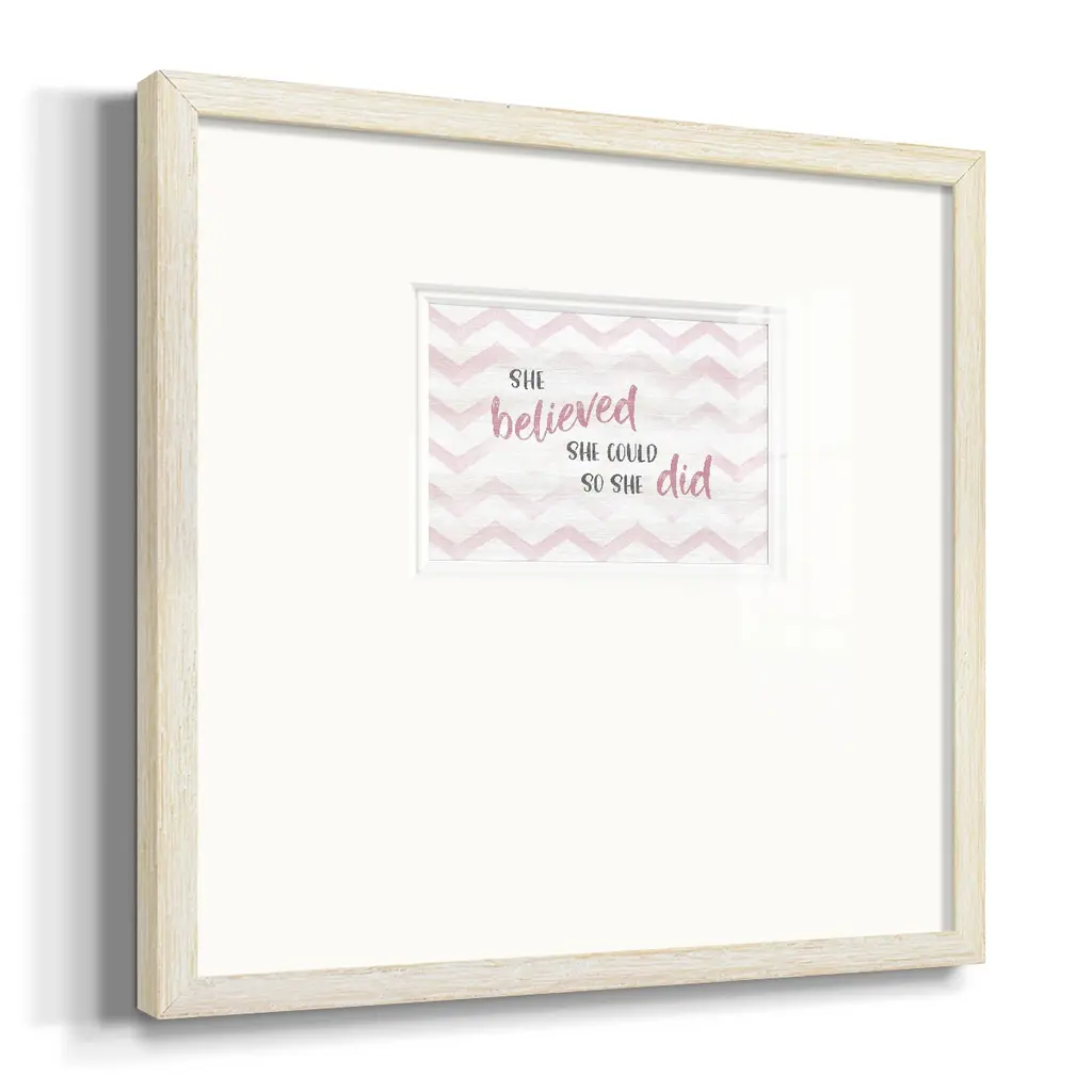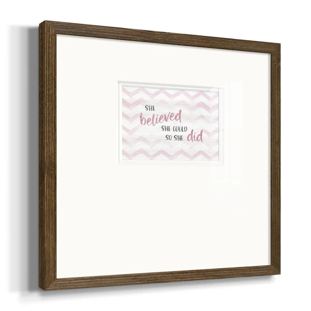 Believed She CouldPremium Framed Print A framed cold pressed paper print featuring superior double matting and quality frame. 2 SIZES AVAILABLE 16''X16''' - Overall Size 20''X20''' - Overall Size Each piece is made to order. Each piece comes with hanging hardware. Made in the USA Ready to Hang Giclee Paper Print Plexiglass Beveled Matt Board Double Matte Board