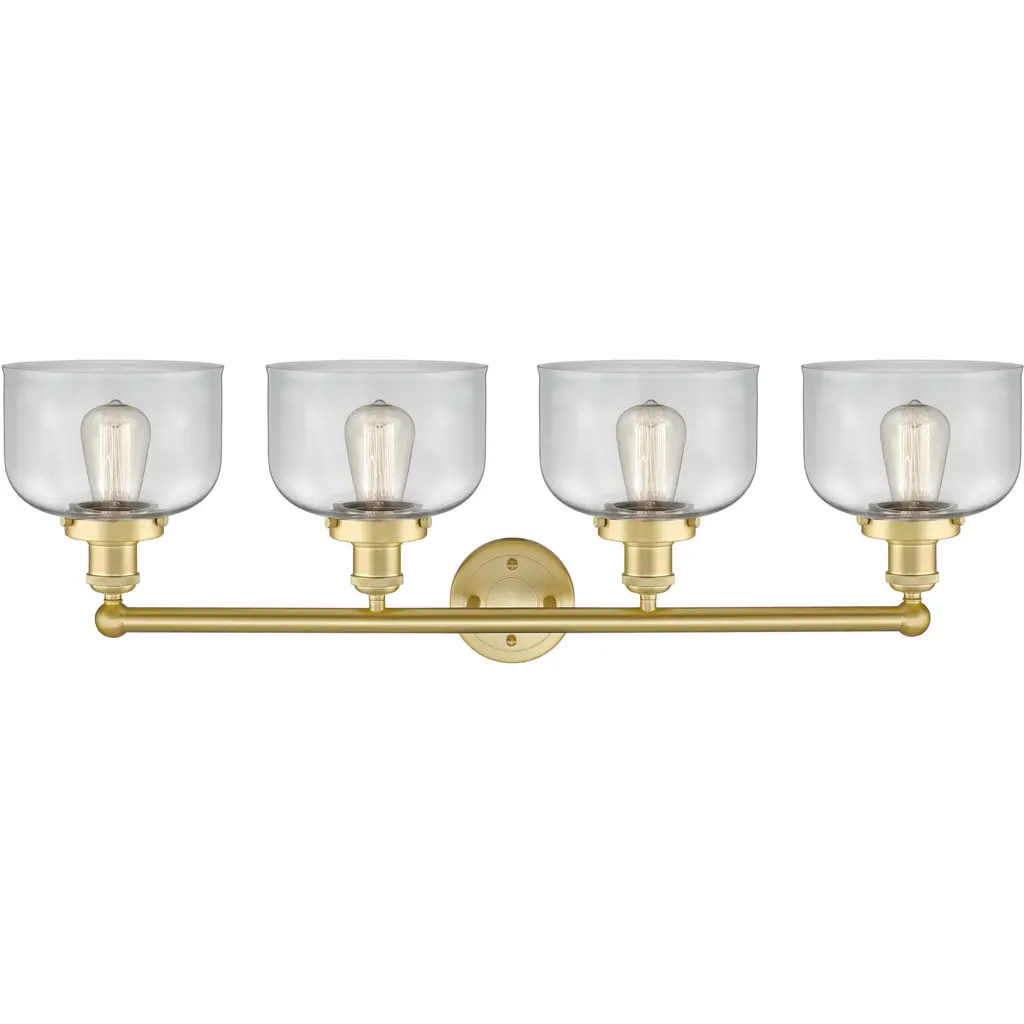Large Bell - 4 Light 34" Bath Vanity Light - Satin Gold Finish - Clear Shade