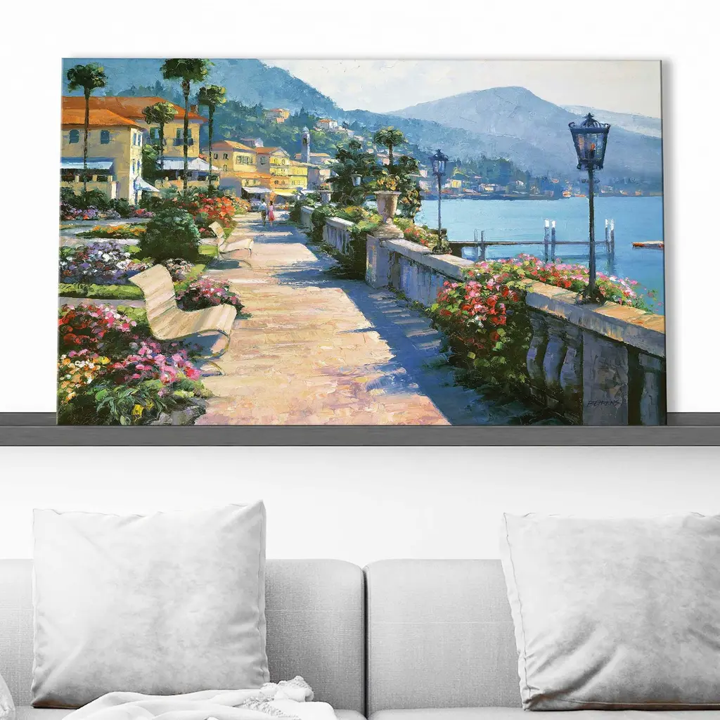 "Bellagio Promenade " By Howard Behrens Print On Canvas - 24 X 40