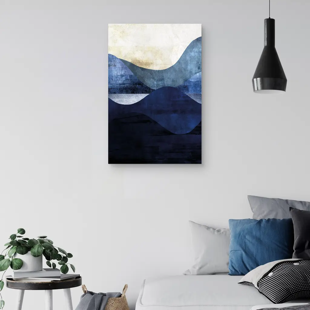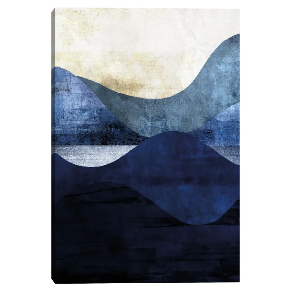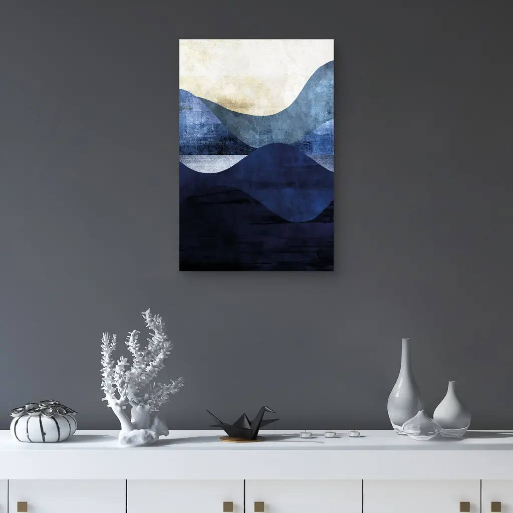 Belle Maison - Indigo Waves by Belle Maison Canvas Art Print is produced with printing that covers the entirety of the canvas for a sleek and stylish museum-quality look. Our framed prints are made by expert craftsmen who strive to make each canvas the masterpiece