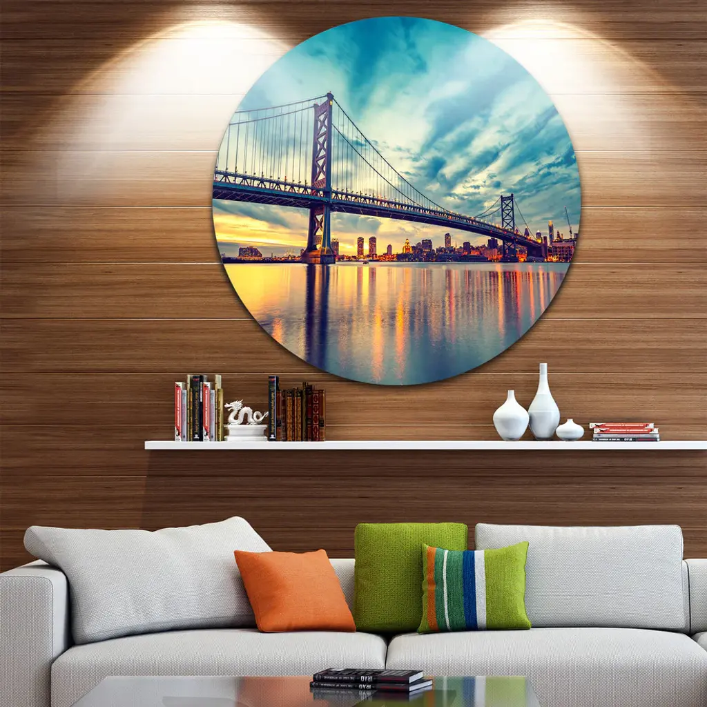 Ben Franklin Bridge In Philadelphia, Cityscape Disc Metal Wall Art, 23"