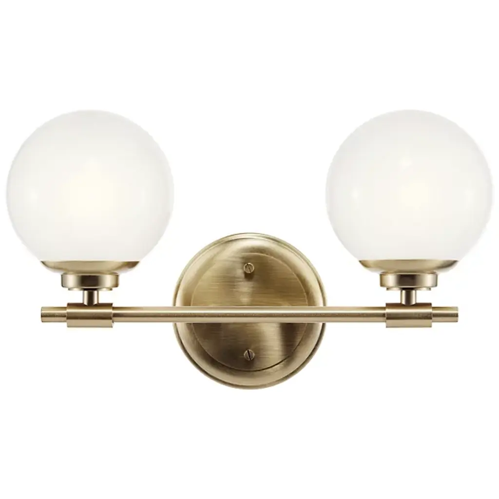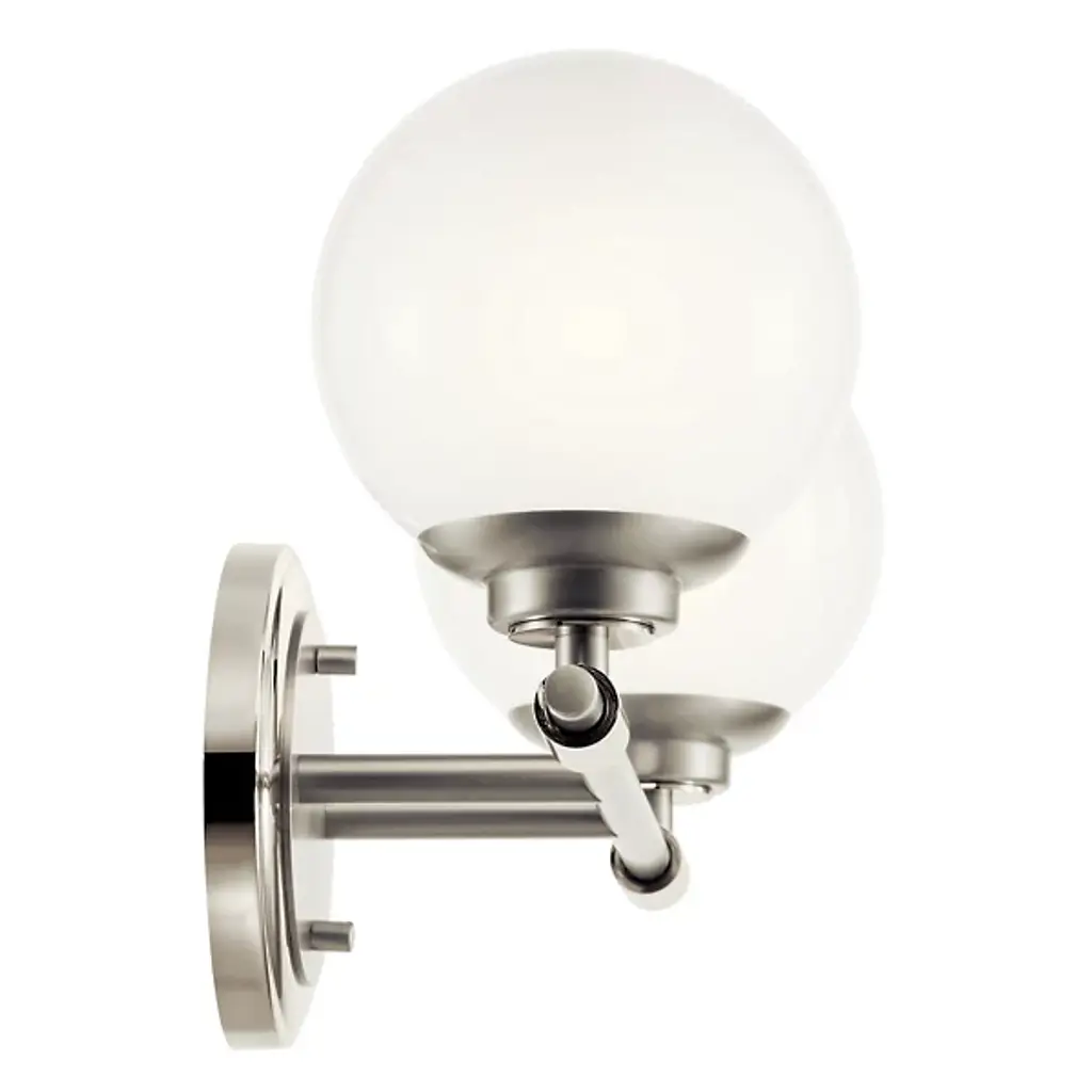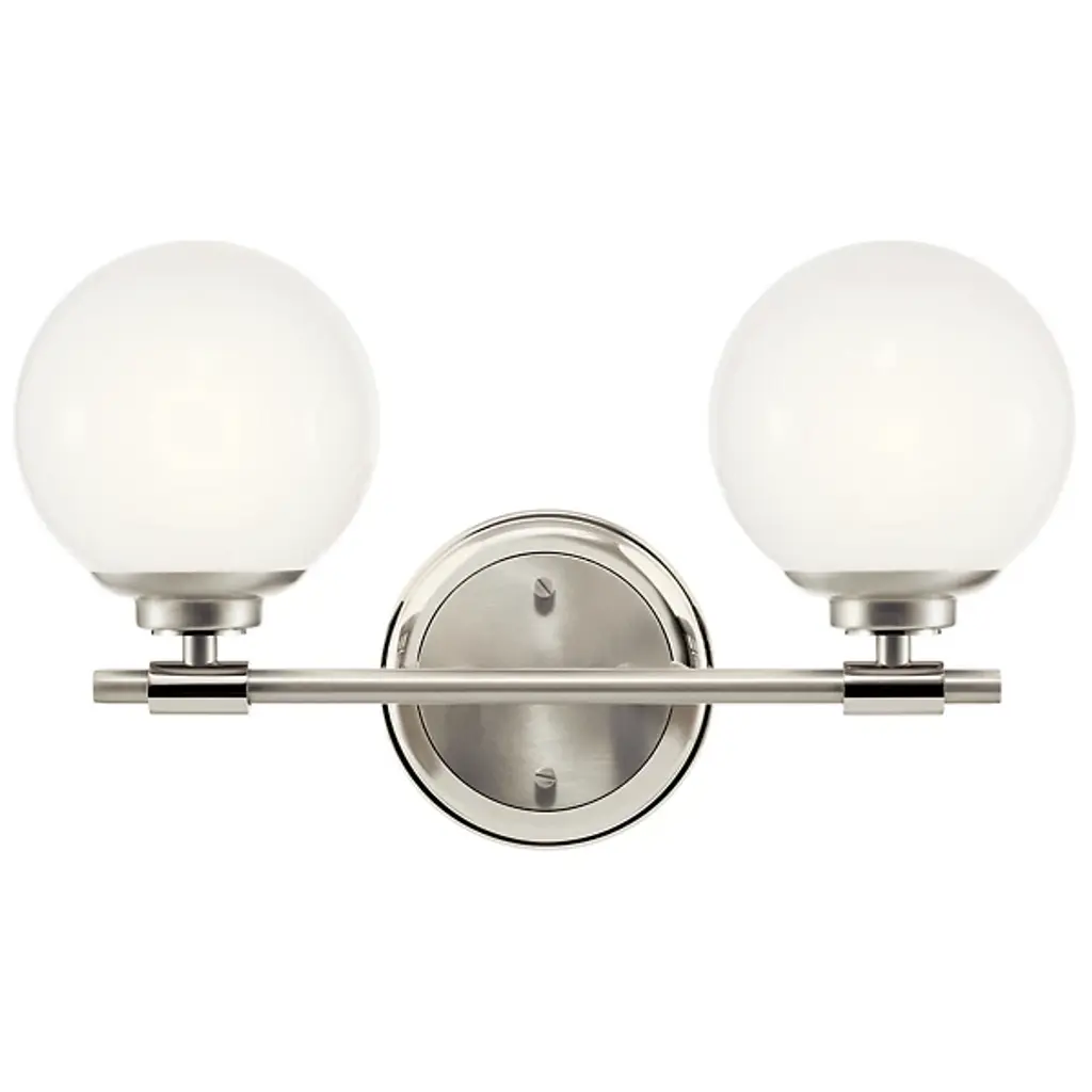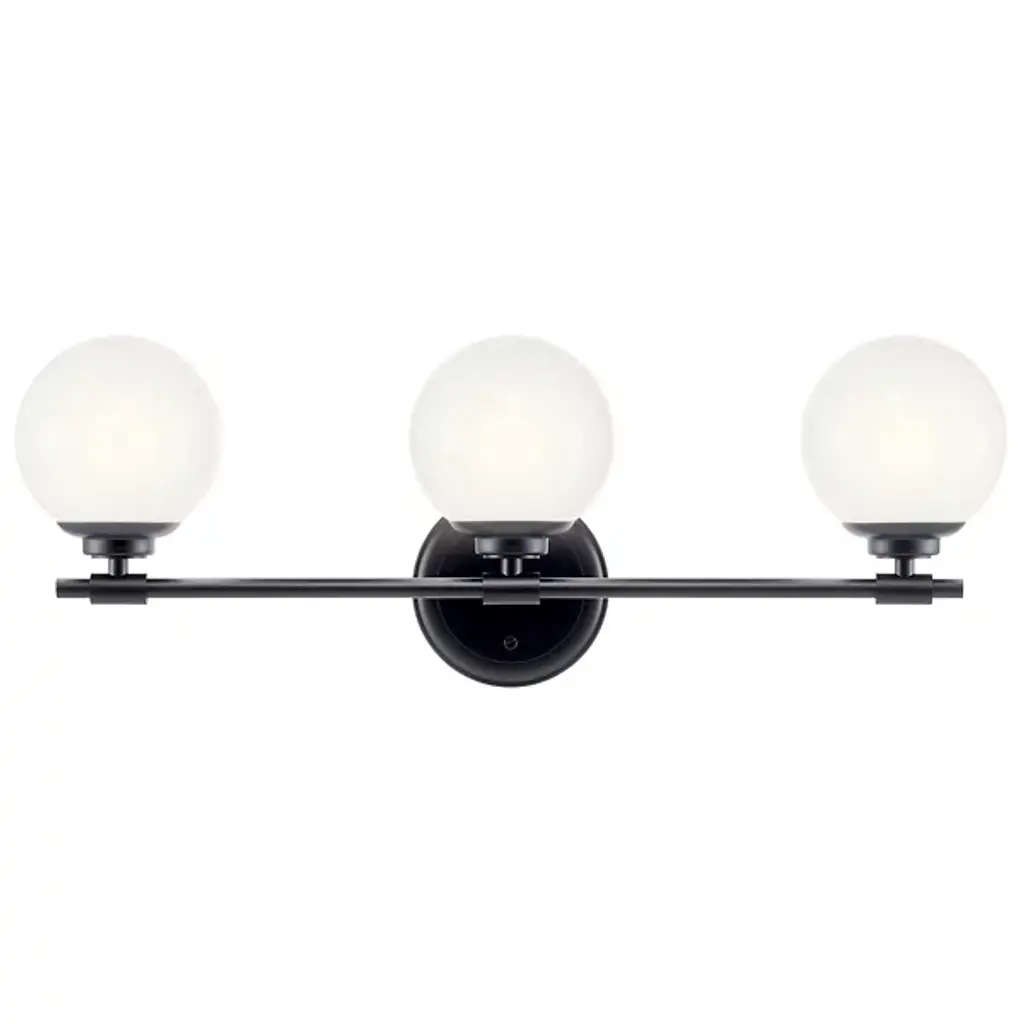 The Benno Vanity Light from Kichler is a chic fixture that elevates your living space’s aesthetic with its timeless and minimalist style. This vanity light is a glamorous addition meticulously crafted from steel. Benno features alluring globe-shaped glass shades that emanate LED light to enhance your beatification routine. The brightness level is adjustable with a separately sold ELV dimmer. Secured by a sturdy backplate, your vanity light is effortlessly balanced on your wall for lasting performance.