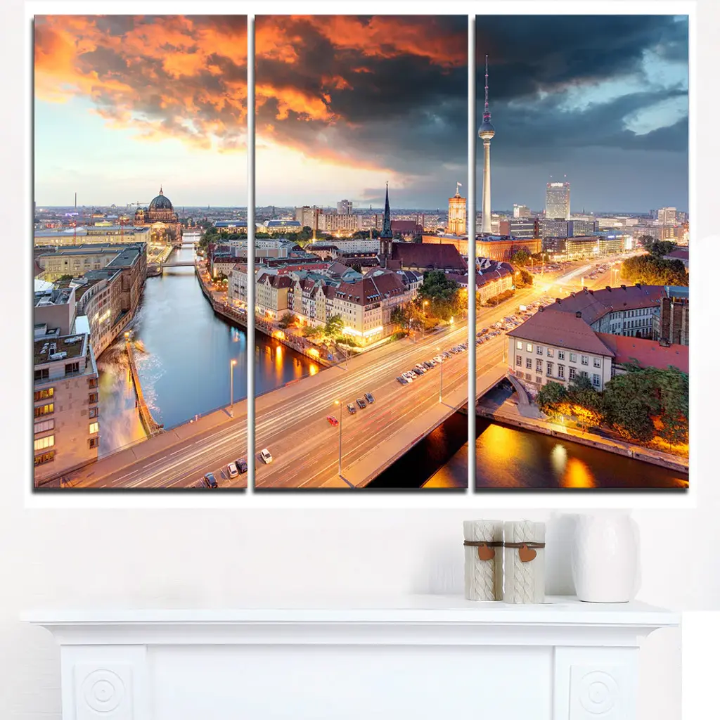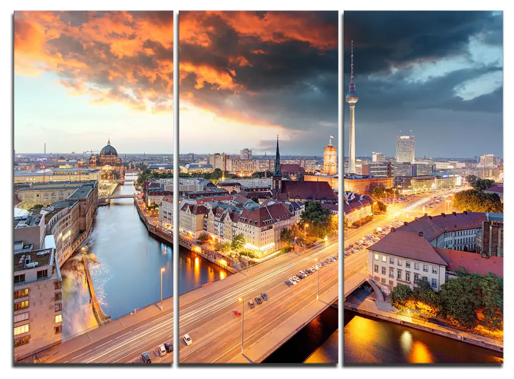 "Berlin At Dawn With Dramatic Sky" Metal Wall Art, 3 Panels, 36"x28"