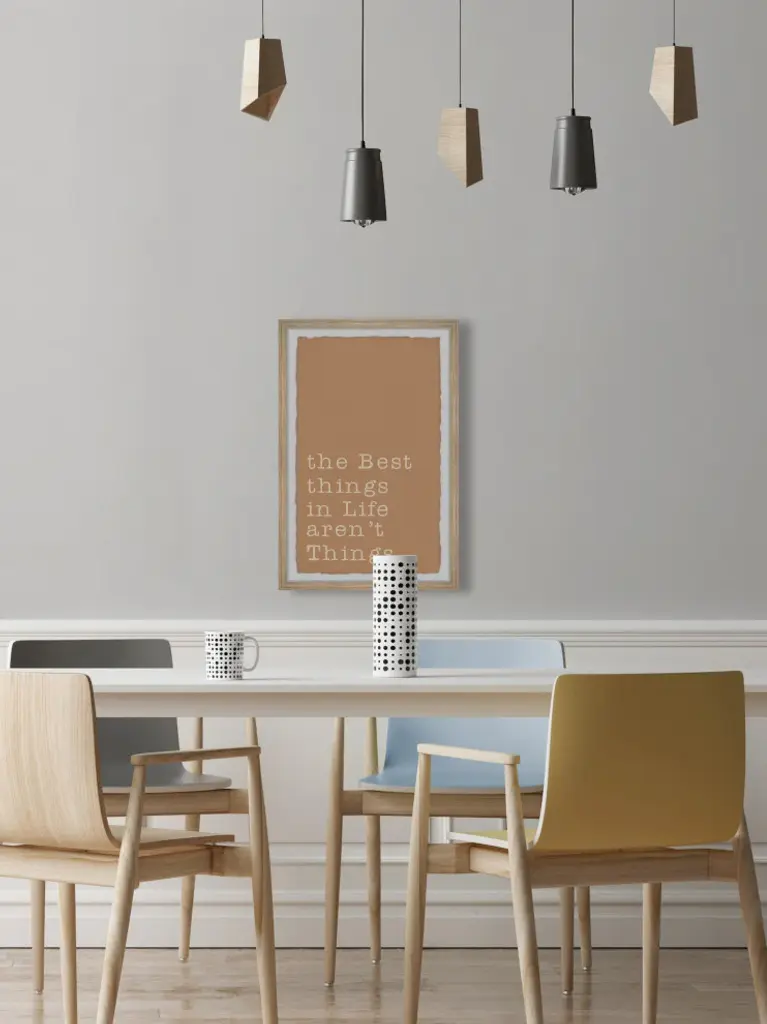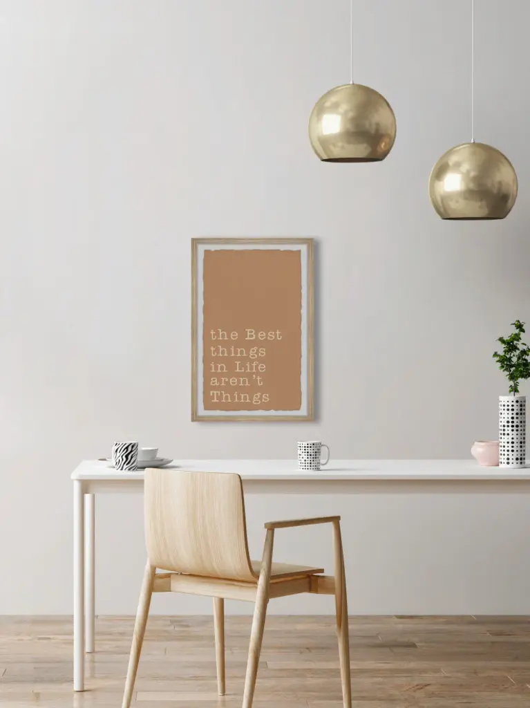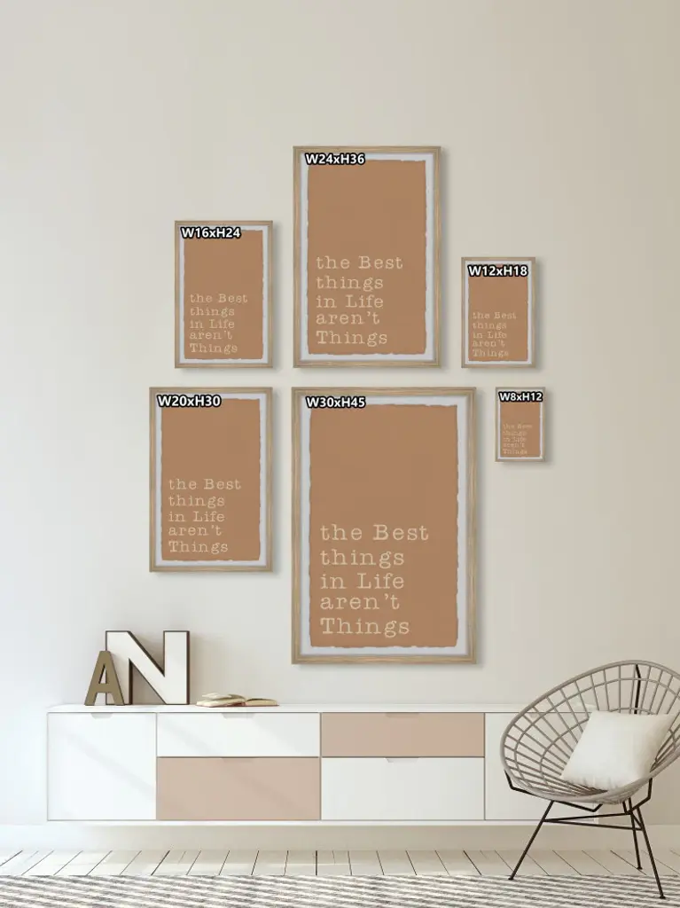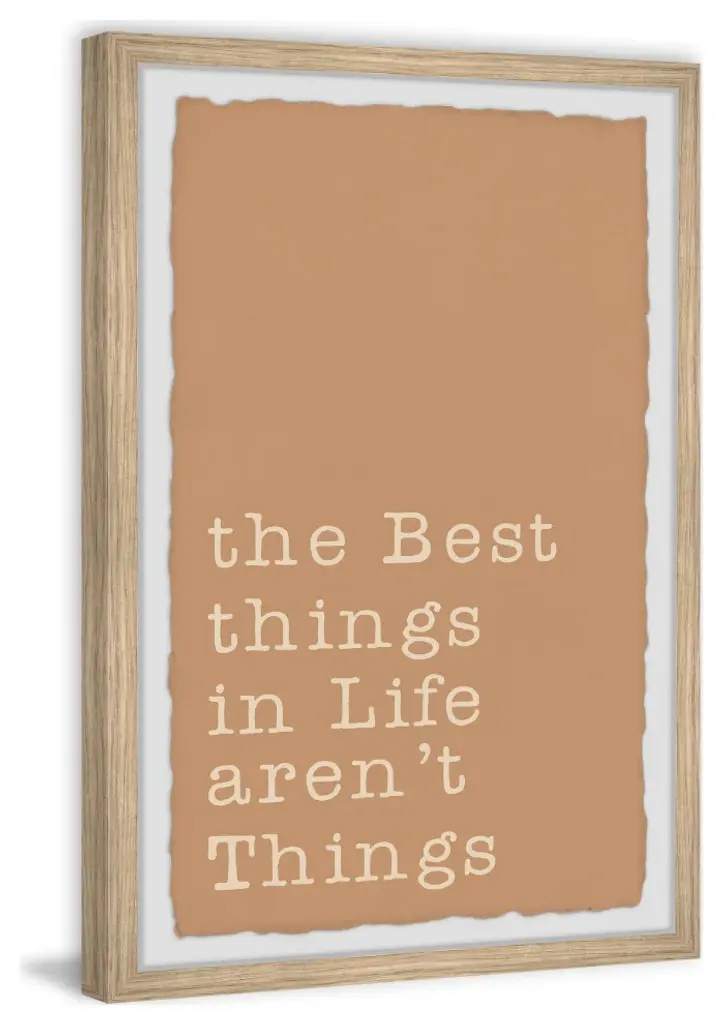 This brown-toned textual art print features a friendly reminder that the best things in life aren''t things. Proudly printed in the USA, this piece is printed on high quality archive paper and professionally hand-framed. With wall-mounting hooks included, this artful accent is ready to hang up as soon as it reaches your front door.- Top quality Giclee print on high resolution Archive Paper- Hand cut deckled edges- High quality durable non-warping frame- Finished under shatter resistant plexiglass- Arrives ready to hang- Includes a certificate of authenticity- Printed in the USA