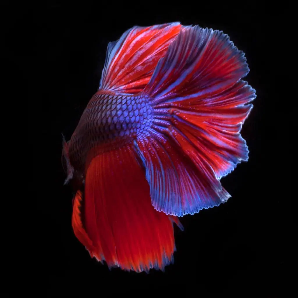 Color Photograph of 2 Male Beta Fish Swimming on Black Printed On Archival Fine Art Paper