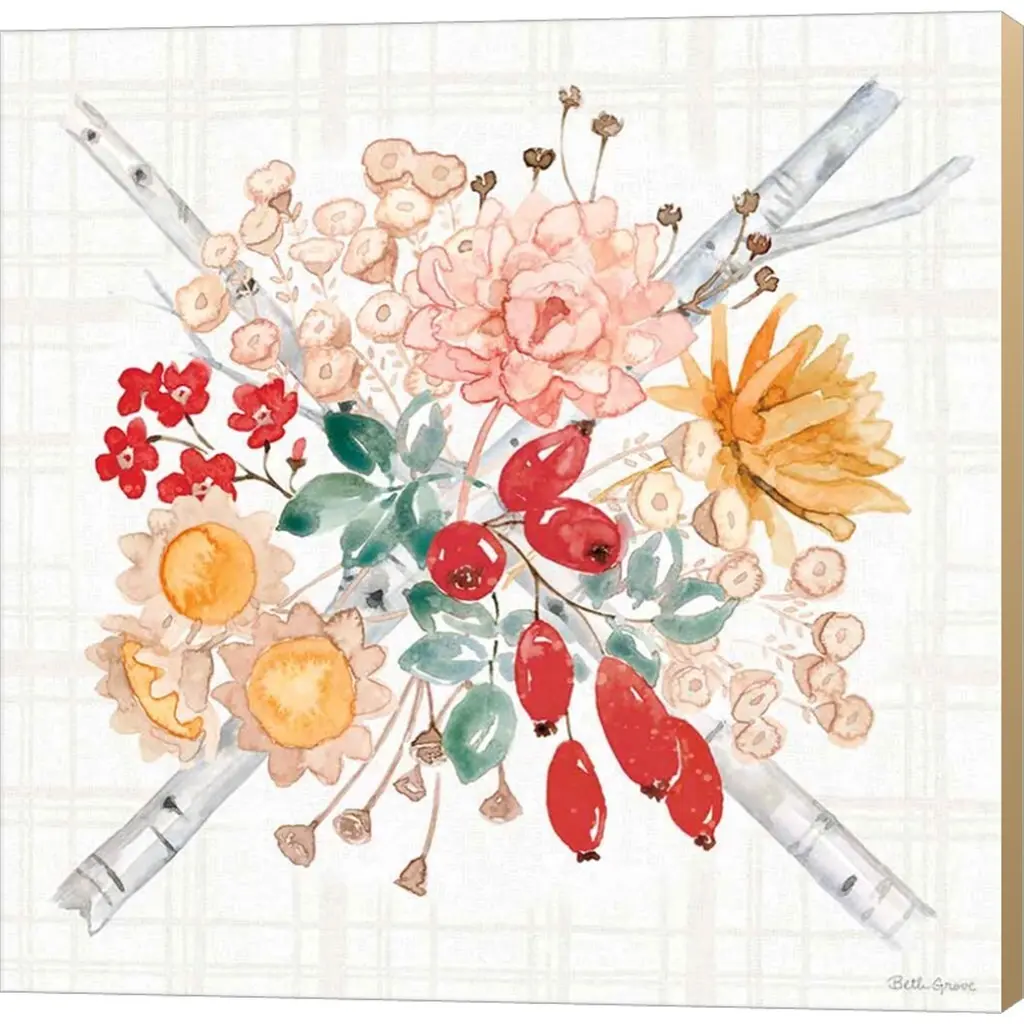 Festive Season VII by Beth Grove is a high quality piece of canvas artwork. The finished size of this piece is 12" X 12", and it has a depth 1.5" with khaki painted sides. There is a UV protective coating over the entire image, and it is ready to hang on your wall with a Standard Drywall Screw (not included). 100% Satisfaction Guaranteed.