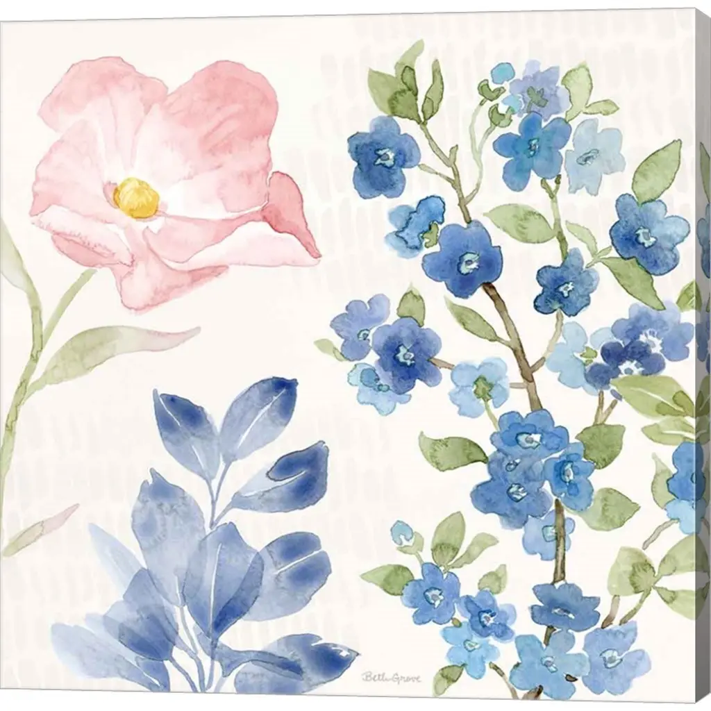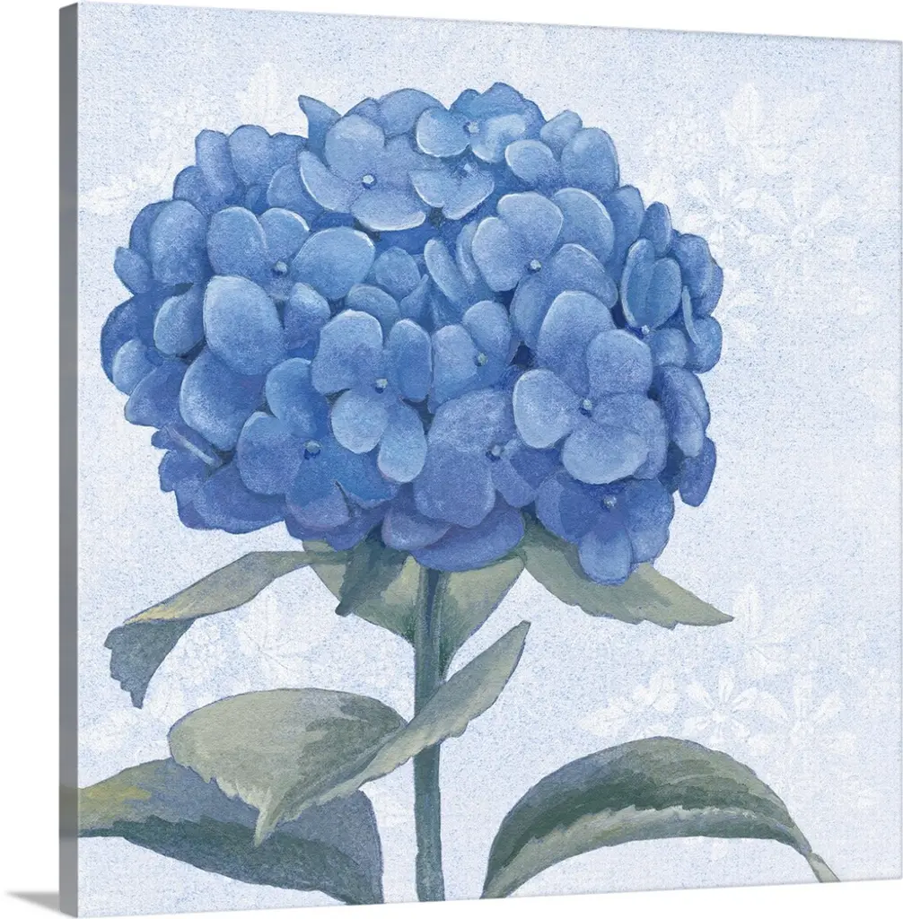 Indigo Petals II by Beth Grove is a high quality piece of canvas artwork. The finished size of this piece is 24" X 24", and it has a depth 1.5". There is a UV protective coating over the entire image, and it is ready to hang on your wall with a standard drywall screw (not included). 100% Satisfaction Guaranteed.