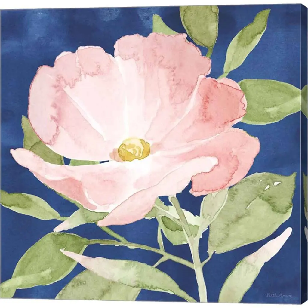Indigo Petals IX by Beth Grove is a high quality piece of canvas artwork. The finished size of this piece is 24" X 24", and it has a depth 1.5". There is a UV protective coating over the entire image, and it is ready to hang on your wall with a standard drywall screw (not included). 100% Satisfaction Guaranteed.