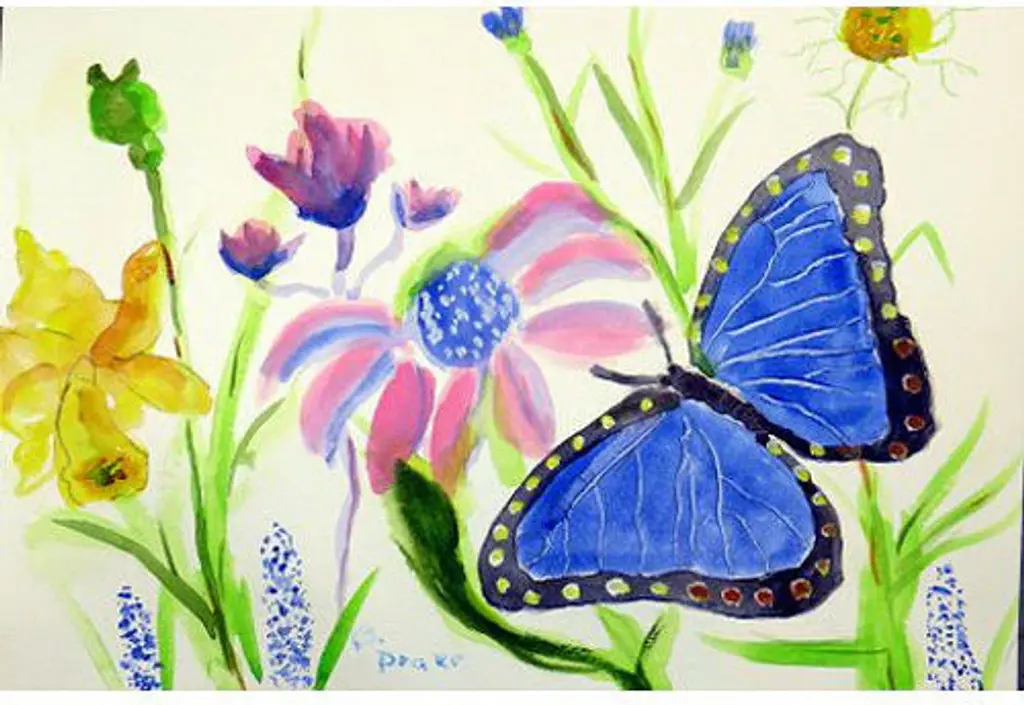 Betsy Drake Betsy's Blue Morpho Butterfly 30 X 50 Inch Floral Comfort Floor Mat