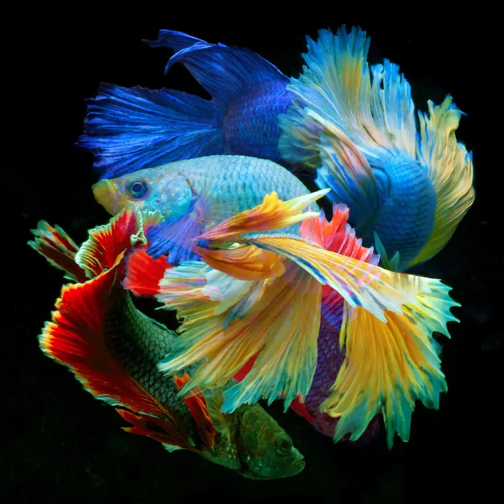 "Betta Collage 11" Contemporary Fish And Botanical Color Photograph By Michael Filonow