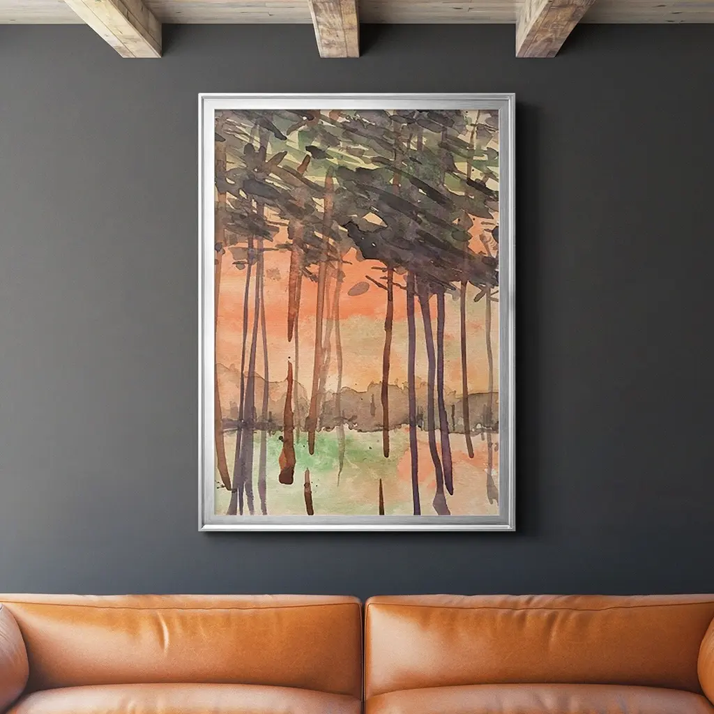 Between the Trees I Premium Framed Print - Ready to Hang A Premium Framed Print created to last. Framed in distressed wood and available in an array of sizes and colors Featuring a beveled a solid wood stretcher bar, each piece comes ready to hand 4 SIZES AVAILABLE 30.5''X42.5'' - Overall Size 26.5'X36.5'' - Overall Size 22.5''x30.5'' - Overall Size 18.5''x24.5'' - Overall Size Each piece is made to order. Each piece comes with hanging hardware. Made in the USA Ready to Hang