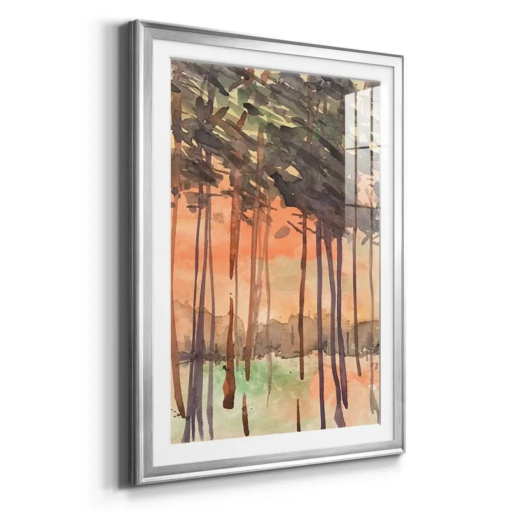Between the Trees I Premium Framed Print - Ready to Hang A Premium Framed Print created to last. Framed in distressed wood and available in an array of sizes and colors Featuring a beveled a solid wood stretcher bar, each piece comes ready to hand 4 SIZES AVAILABLE 30.5''X42.5'' - Overall Size 26.5'X36.5'' - Overall Size 22.5''x30.5'' - Overall Size 18.5''x24.5'' - Overall Size Each piece is made to order. Each piece comes with hanging hardware. Made in the USA Ready to Hang Giclee Paper Print Acrylic Glass Beveled Matt Board