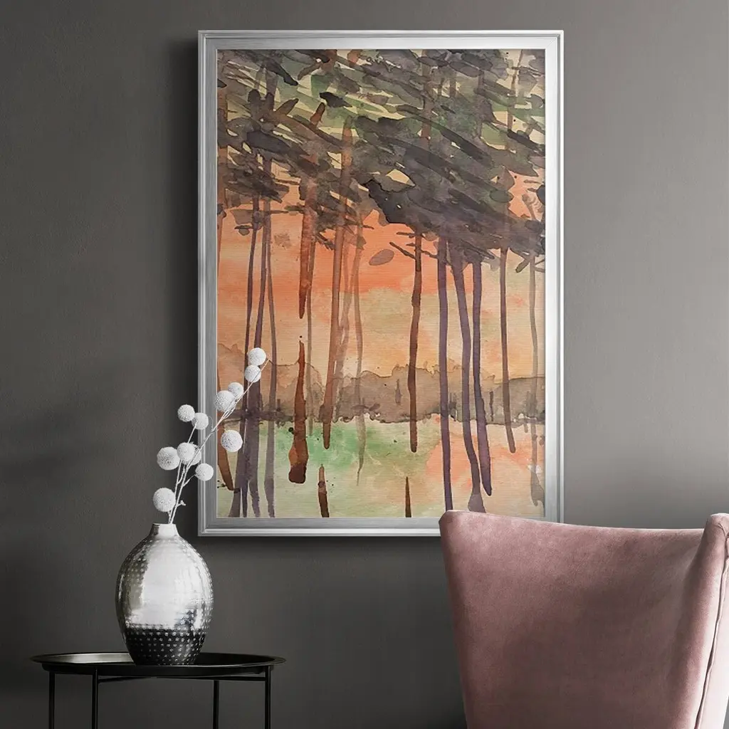 Between the Trees I Premium Framed Print - Ready to Hang A Premium Framed Print created to last. Framed in distressed wood and available in an array of sizes and colors Featuring a beveled a solid wood stretcher bar, each piece comes ready to hand 4 SIZES AVAILABLE 30.5''X42.5'' - Overall Size 26.5'X36.5'' - Overall Size 22.5''x30.5'' - Overall Size 18.5''x24.5'' - Overall Size Each piece is made to order. Each piece comes with hanging hardware. Made in the USA Ready to Hang