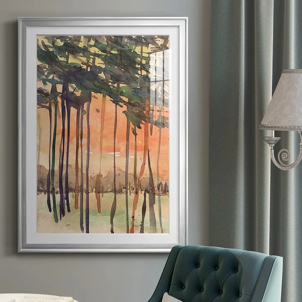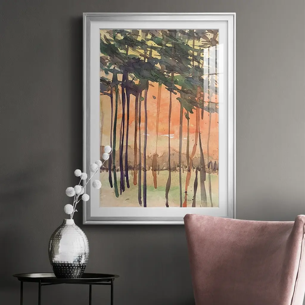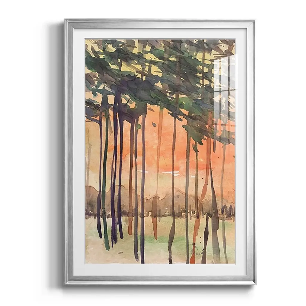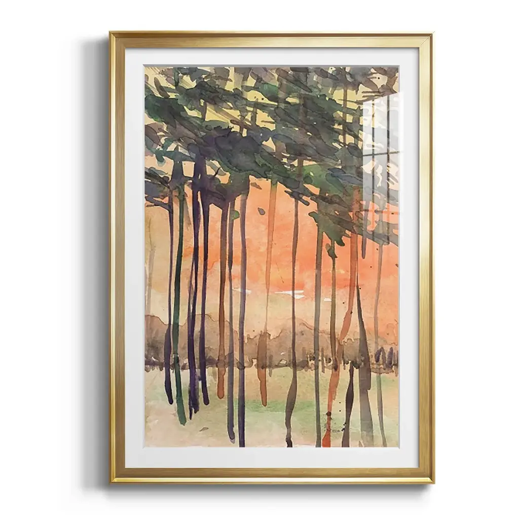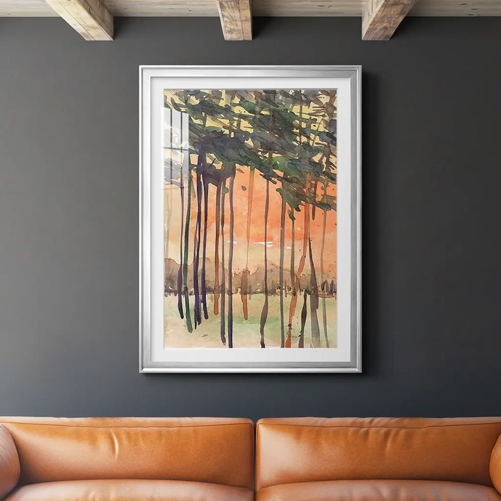 Between the Trees II Premium Framed Print - Ready to Hang A Premium Framed Print created to last. Framed in distressed wood and available in an array of sizes and colors Featuring a beveled a solid wood stretcher bar, each piece comes ready to hand 4 SIZES AVAILABLE 30.5''X42.5'' - Overall Size 26.5'X36.5'' - Overall Size 22.5''x30.5'' - Overall Size 18.5''x24.5'' - Overall Size Each piece is made to order. Each piece comes with hanging hardware. Made in the USA Ready to Hang Giclee Paper Print Acrylic Glass Beveled Matt Board