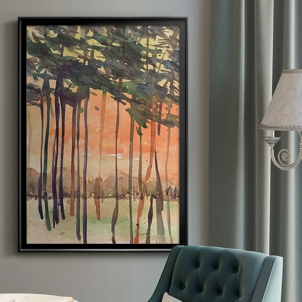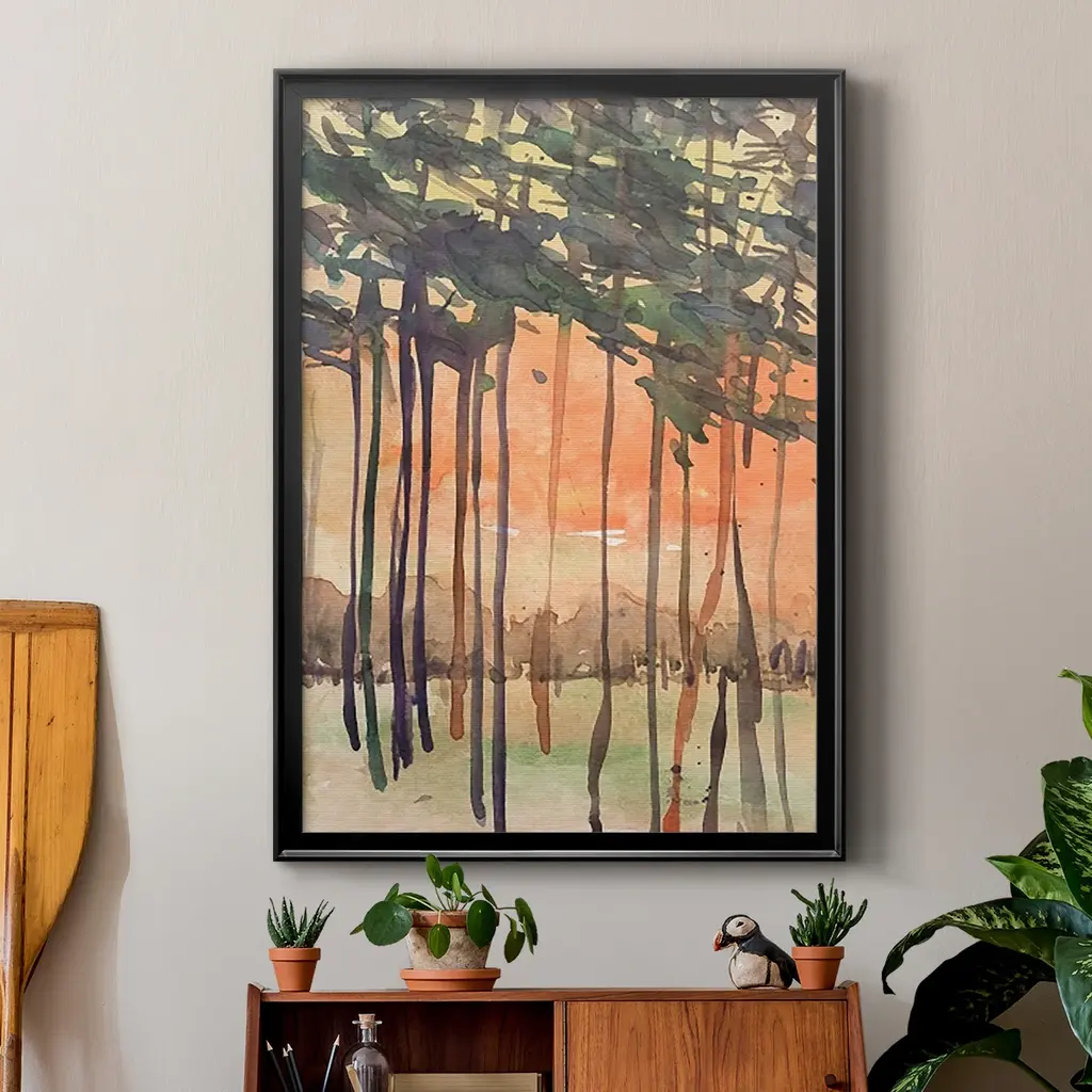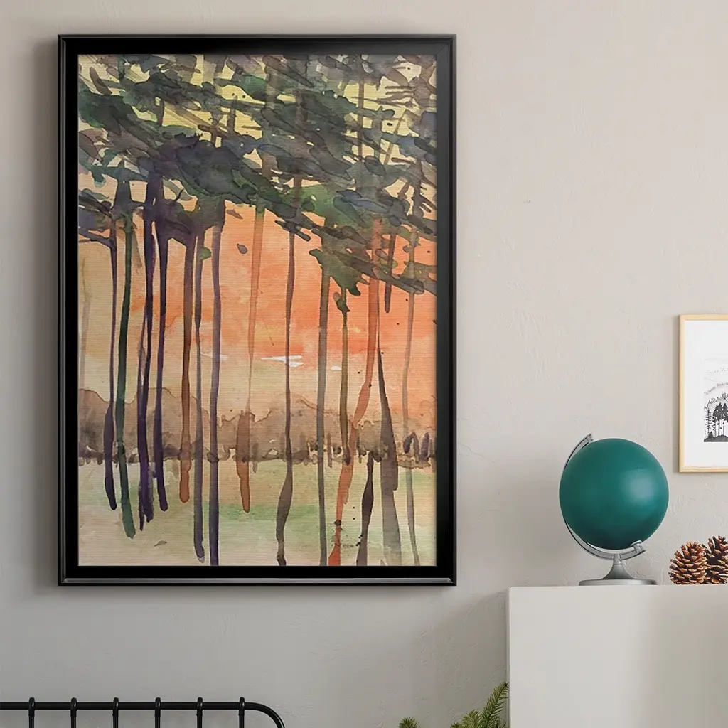 Between the Trees II Premium Framed Print - Ready to Hang A Premium Framed Print created to last. Framed in distressed wood and available in an array of sizes and colors Featuring a beveled a solid wood stretcher bar, each piece comes ready to hand 4 SIZES AVAILABLE 30.5''X42.5'' - Overall Size 26.5'X36.5'' - Overall Size 22.5''x30.5'' - Overall Size 18.5''x24.5'' - Overall Size Each piece is made to order. Each piece comes with hanging hardware. Made in the USA Ready to Hang