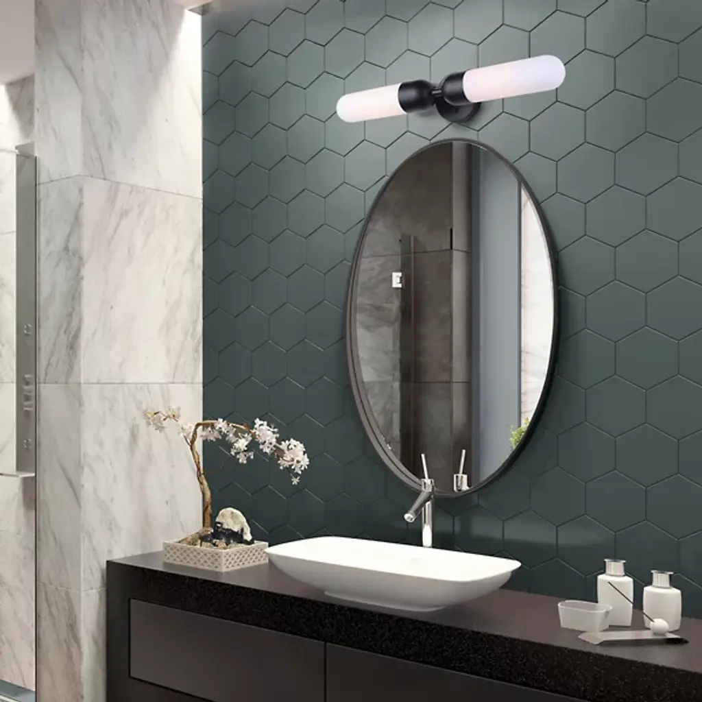 The Bevin Vanity Light from Canarm adapts its sister sconce's design for bathroom settings. The elongated glass cylinder provides even facial illumination without harsh shadows. Its clean lines complement modern bathroom fixtures while maintaining timeless appeal. The mounting system positions the light at an optimal distance from the wall, ensuring effective illumination for grooming tasks. Perfect for powder rooms and master baths where lighting needs to be both purposeful and refined.