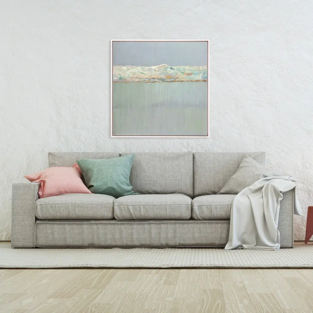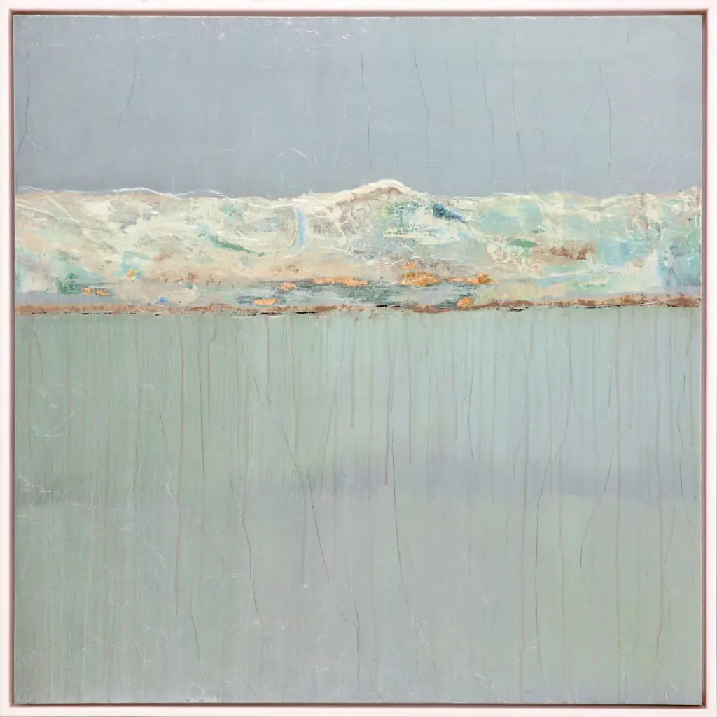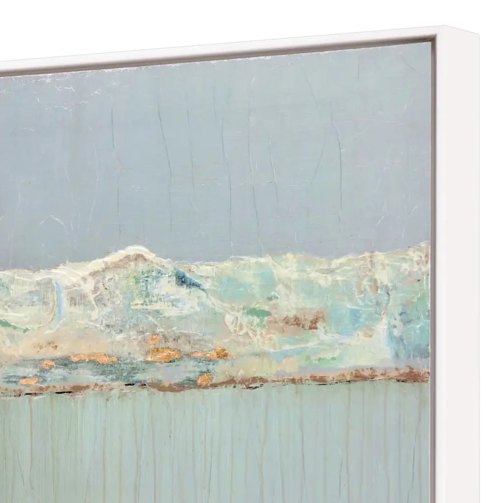 Hand embellished giclee on wood. Mounted in a matte white wood floater frame.
