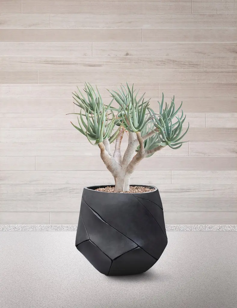 Bhaca Small Grey Planter by IndigenusDesigned by Andile DyalvaneDimensions: Ø 87,3 x H 67,8 cm.Materials: Stone.Weight: 65 kg.Different colors and sizes are available. Please contact us.The Bhaca is a completely personal and original range of stone planters that reflect ceramicist Andile Dyalvane’s connection to his Xhosa roots while celebrating his mastery of an elemental material of choice – clay. Bhaca - meaning scarification - is a traditional Xhosa method of finely cutting the skin (usually on the cheeks) to mark initiation, clan identification, or healing. Andile desires to preserve and share his cultural roots of this ancient tradition by cutting into clay and pushing open the cuts where they intersect as if to open the flesh. The Bhaca has been electronically scanned and scaled from smaller clay vessels to form big impactful shapes made from stone that share this story with the world. Bhaca’s are made out of glass-reinforced concrete.Indigenus, founded in 2014, is the brainchild of Cape Town local, Peter van der Post. At the beginning of his career, whilst working in roto-moulding, Peter noticed a lack of high design planters in the market and the vision to produce the most beautiful, original, and desirable planters began to grow. Over the past 8 years, the Indigenus team has collaborated with South Africa’s top designers to create planters that are art pieces in their own right. 2022 has seen exciting collaborations further afield with internationally renowned designers and collaborators. In line with our sustainability and quality luxury objectives, we are constantly striving to make planters for life and not just for a few seasons. It has taken years of refinement, many valuable lessons learned and, ultimately, setting up our world-class factory for in-house manufacturing to be able to ensure that the planters are of the highest quality. All materials are sustainably sourced and the planters are made by hand. It is this craftsmanship that puts Indigenus in a league of its own. Each range of planters is unique and illustrates the impact that beautiful sculptural planters have on architecture and landscapes. The planters' close connection to the earth is expressed through a stable and grounded design, made with beautiful natural materials and evoking an underlying story of our relationship with the natural world.Indigenus is focused on collaboration with the world’s top designers and artists. We are committed to constant refinement and a willingness to be courageous, curious, and experimental with natural materials and new designs. We have built solid distributor networks and relationships that we are committed to maintaining and growing globally. We are proud of our roots as an African luxury brand with a global footprint.