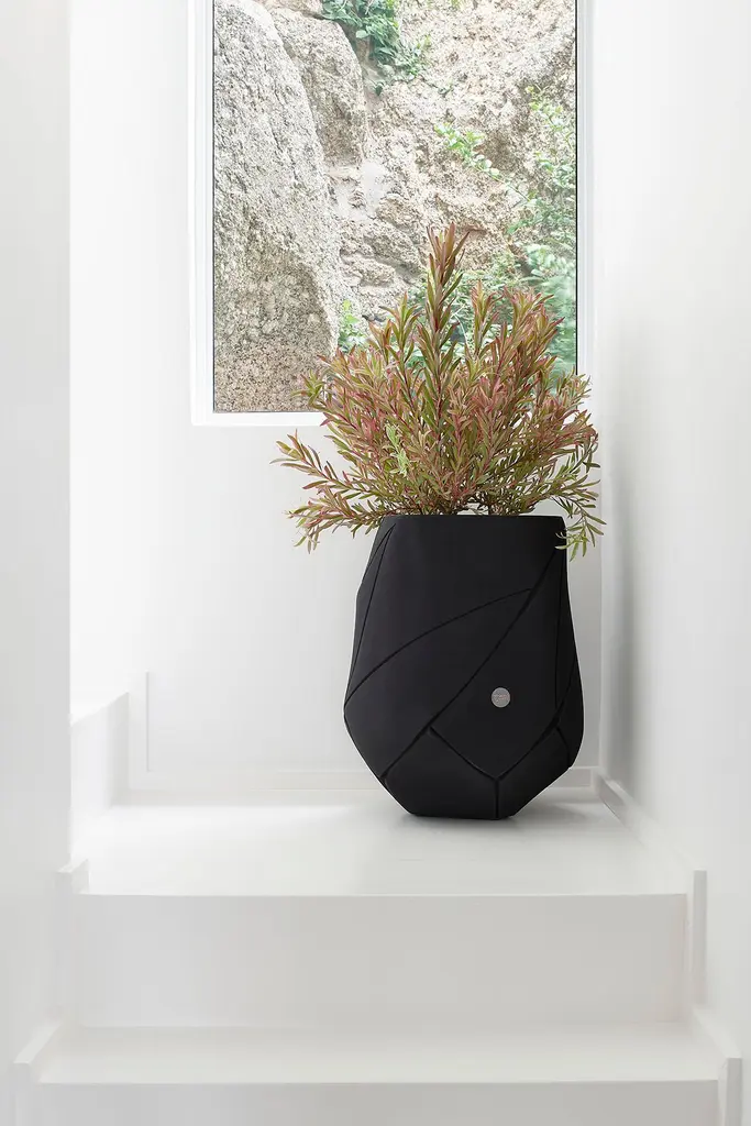 Bhaca XS Black Planter by IndigenusDesigned by Andile DyalvaneDimensions: Ø 45,2 x H 56,5 cm.Materials: Stone.Weight: 25 kg.Different colors and sizes are available. Please contact us.The Bhaca is a completely personal and original range of stone planters that reflect ceramicist Andile Dyalvane’s connection to his Xhosa roots while celebrating his mastery of an elemental material of choice – clay. Bhaca - meaning scarification - is a traditional Xhosa method of finely cutting the skin (usually on the cheeks) to mark initiation, clan identification, or healing. Andile desires to preserve and share his cultural roots of this ancient tradition by cutting into clay and pushing open the cuts where they intersect as if to open the flesh. The Bhaca has been electronically scanned and scaled from smaller clay vessels to form big impactful shapes made from stone that share this story with the world. Bhaca’s are made out of glass-reinforced concrete.Indigenus, founded in 2014, is the brainchild of Cape Town local, Peter van der Post. At the beginning of his career, whilst working in roto-moulding, Peter noticed a lack of high design planters in the market and the vision to produce the most beautiful, original, and desirable planters began to grow. Over the past 8 years, the Indigenus team has collaborated with South Africa’s top designers to create planters that are art pieces in their own right. 2022 has seen exciting collaborations further afield with internationally renowned designers and collaborators. In line with our sustainability and quality luxury objectives, we are constantly striving to make planters for life and not just for a few seasons. It has taken years of refinement, many valuable lessons learned and, ultimately, setting up our world-class factory for in-house manufacturing to be able to ensure that the planters are of the highest quality. All materials are sustainably sourced and the planters are made by hand. It is this craftsmanship that puts Indigenus in a league of its own. Each range of planters is unique and illustrates the impact that beautiful sculptural planters have on architecture and landscapes. The planters' close connection to the earth is expressed through a stable and grounded design, made with beautiful natural materials and evoking an underlying story of our relationship with the natural world.Indigenus is focused on collaboration with the world’s top designers and artists. We are committed to constant refinement and a willingness to be courageous, curious, and experimental with natural materials and new designs. We have built solid distributor networks and relationships that we are committed to maintaining and growing globally. We are proud of our roots as an African luxury brand with a global footprint.