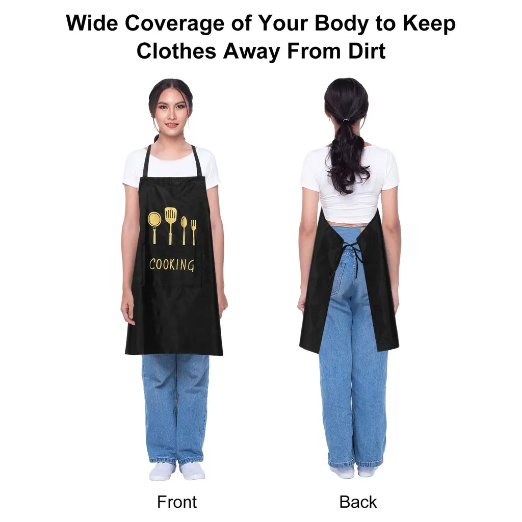 The bib is made of PVC fabric, which is strong, breathable and partially waterproof, helping to prevent minor spills and isolating oil and dirt from penetrating. The surface is smooth and not easy to adhere to dirt, easy to clean and suitable for long-term use.The hang neck design ensures that the apron fits you securely and does not slip off, improving your work efficiency. The double pocket design provides enough storage space for you to take items at any time. Convenient and practical waist drawstring, suitable for people of different body shapes.The bib apron ensures your body is widely covered to prevent your clothes from getting dirty. Can be used for cooking, baking, grilling, painting, and pottery. Suitable for chefs, baristas, kitchens, bartenders, bistro staff, grills, etc.Aprons need to be machine washed in cold water, dark colors washed separately. Avoid using bleach and tumble dry only on low heat. Do not iron or dry clean the apron to maintain its quality and durability.