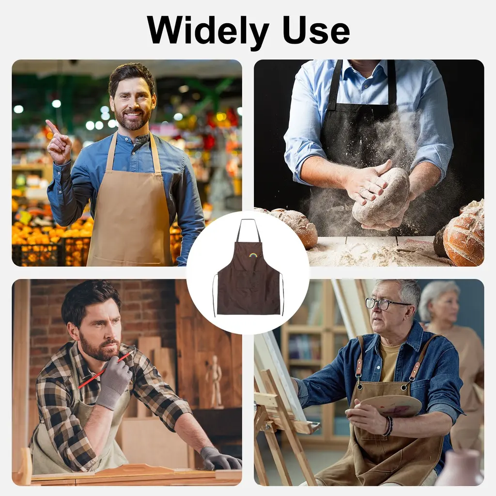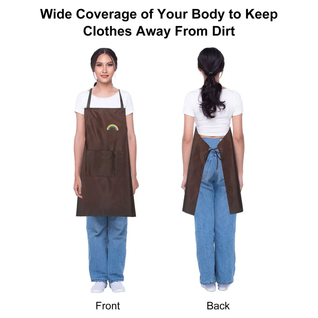 Bib Apron 72x65cm Unisex Cooking Aprons With 2 Pockets For Home - 28.35" X 25.59" - Brown