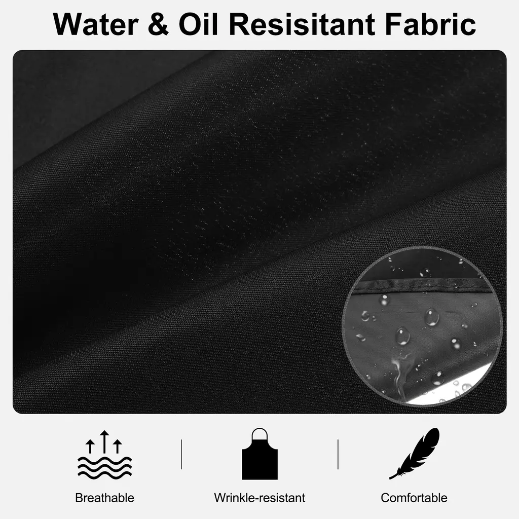 The bib is made of stretch polyester and PVC, which is strong, breathable, partially waterproof, prevents minor spills and oil penetration, and has a smooth surface that does not easily adhere to dirt. Its wrinkle-resistant properties can maintain its overall beauty and are suitable for long-term use.The hang neck design ensures that the apron fits you securely and does not slip off, improving your work efficiency. The double pocket design provides enough storage space for you to take items at any time. Convenient and practical waist drawstring, suitable for people of different body shapes.The bib apron ensures your body is widely covered to prevent your clothes from getting dirty. Can be used for cooking, baking, grilling, painting, and pottery. Suitable for chefs, baristas, kitchens, bartenders, bistro staff, grills, etc.Aprons need to be machine washed in cold water, dark colors washed separately. Avoid using bleach and tumble dry only on low heat. Do not iron or dry clean the apron to maintain its quality and durability.