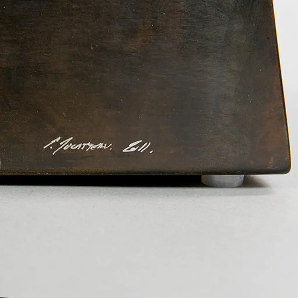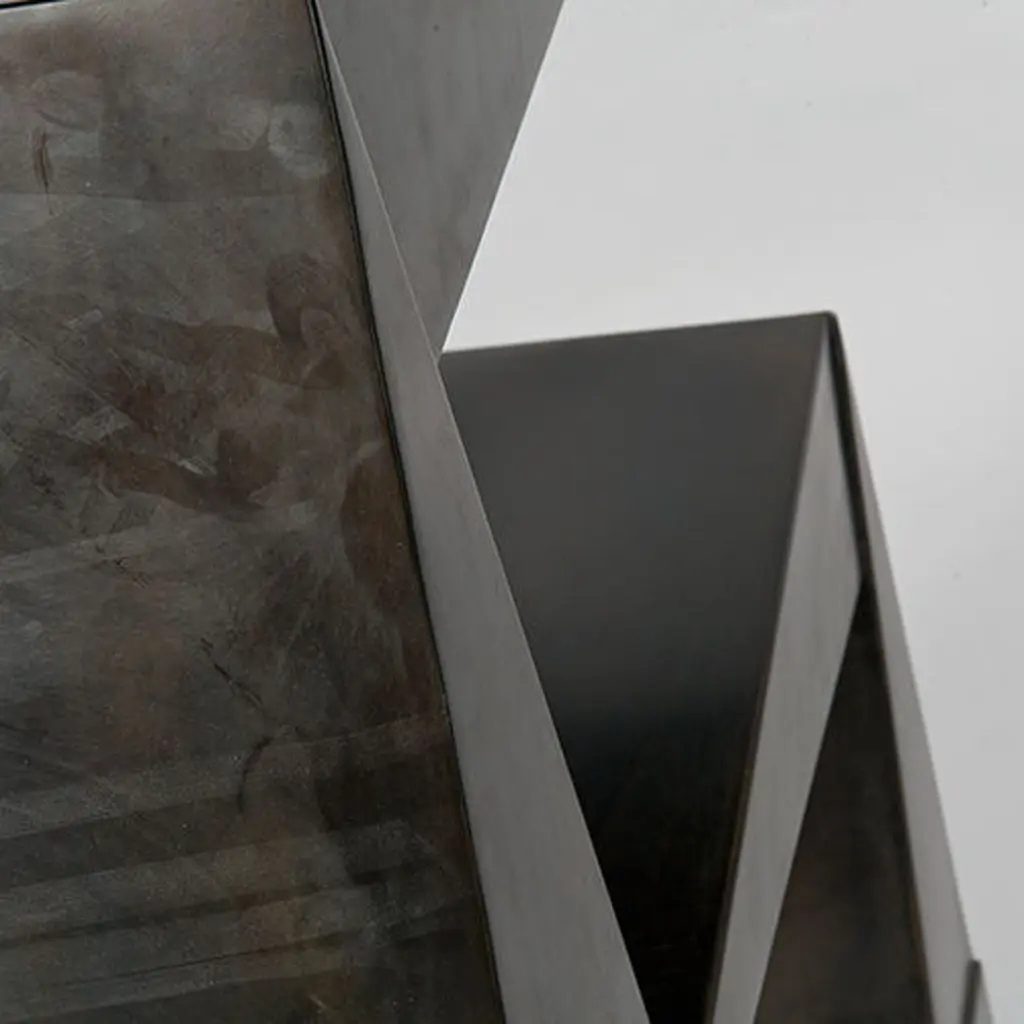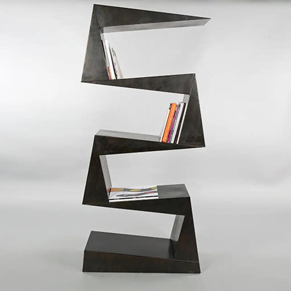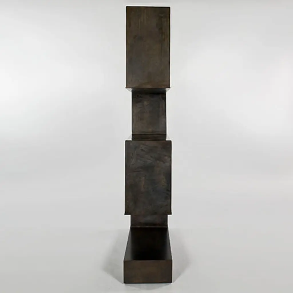 "Biblio John"; steel bookcase by Stephane Ducatteau, signed by artist, France, 2011This bookcase rejects the idea that books and magazines should either stand to attention or lie flat and invites us to allow them to lean elegantly instead. Beautiful enough to be entirely non-functional. Ducatteau is an artist and creator of contemporary furniture working primarily with sheet metal.All Ducatteau pieces are available exclusively from Decoratum and are to order only. Please allow 6-8 weeks for delivery. Exchange rate fluctuations may apply.Ste´phane DUCATTEAUDucatteau is an artist and creator of contemporary furniture working primarily with sheet metal.Although his furniture is about the aesthetic, he never forgets the functional aspects of his pieces. His approach is sculptural, using a pleasurable mix of ergonomics and curves to generate an emotional, almost sensual response in the viewer.The metals Ducatteau uses, take on an almost ebony-like effect thanks to the well-worked patinas that he produces, often treating the metal with acids or minerals; each piece is produced to the same rigorous standards that you would expect from someone with the skills of a wrought iron metal worker combined with the impossibly high standards of an artist.Ducatteau’s background is not what you would expect from an artist, having initially studied engineering. However, over the course of several years he attended evening classes in Paris studying fine arts (drawing, painting, modelling, glasswork, etc) before obtaining a degree in Art Metalwork. After working as an engineer in an architect’s office, he made the decision to devote a full year to further training in the art of metalwork as he no longer wished to merely be a disassociated part of the design process; rather he wanted to be the process, involving himself in the entire project from concept to design to final realisation of the object.His work has developed over time, moving from a more decorative style to simpler creations where he has distilled the very basic essence of design into deceptively pure, functional works of art.A recurring device or theme of his work method is the accumulation or repetition of relatively basic elements whose very repetition creates a rhythm which provides direction for his creativity processes.Ducatteau worked for several years in Roubaix in northern France out of a collective workshop before settling in Normandy in 2003. He has a number of exhibitions and fairs under his belt as can be seen below.ExhibitionsSept/Oct 2009 TALENTS, SHOW-ROOMMay/July 2009 GALERIE EMEURAUDE, Le TouquetJune 2008 VIA, Paris (exposition des LABELS VIA 2008)April 2008 VIA, Milan (exposition des LABELS VIA 2008)Nov 2007 GALERIE LE FEUVRE, se´ries limite´es, ParisSept 2006 LA NUIT BLANCHE, Toronto, ROSELAND GALLERYMay/June 2006 MAATGALLERY, Paris Apr/May 2006 ROSELAND GALLERY, TorontoApril 2006 VIA, Milan (exposition des LABELS VIA 2006)July/Aug 2005 GALERIE EMEURAUDE, Le TouquetFebruary 2005 Maison des architectes de GrenobleJuly 2004 GALERIS S1LIVRE?, Villerville (14) December 2003 CARREFOUR DES ARTS, Brecey (14)Nov/Dec 2003 GALERIE Ateliers d`Art de France, ParisApril 2003 VISIONI, invite´ au sein de la se´lection franaise, FlorenceFairs2001 onwards MAISON ET OBJET / SCENES D`INTERIEUR, 2 fois par an depuis 2001, ParisJan 2005 Salon du meuble, ParisDec 2004/5 Design Louveciennes, LouveciennesDec 2005 RECUP, ParisOctober 2003 HABITER, Jardin des Tuileries, ParisDec 2002 Salon des Antiquaires, Jardin des Tuileries, ParisDec 2003 Carrousel des Me´tiers d`art, Carrousel du Louvres, Paris LABEL VIA 2008, pour JEU DE CARTESLABEL VIA 2006, pour les tabourets TABPRIX "DECOUVERTE" lors du salon Maison et Objet en Septembre 2002.