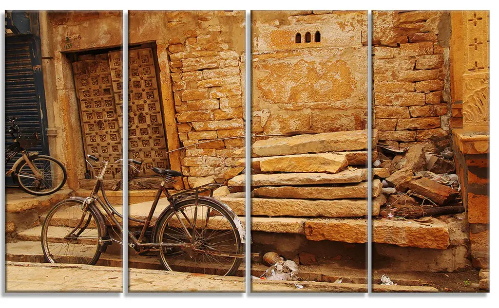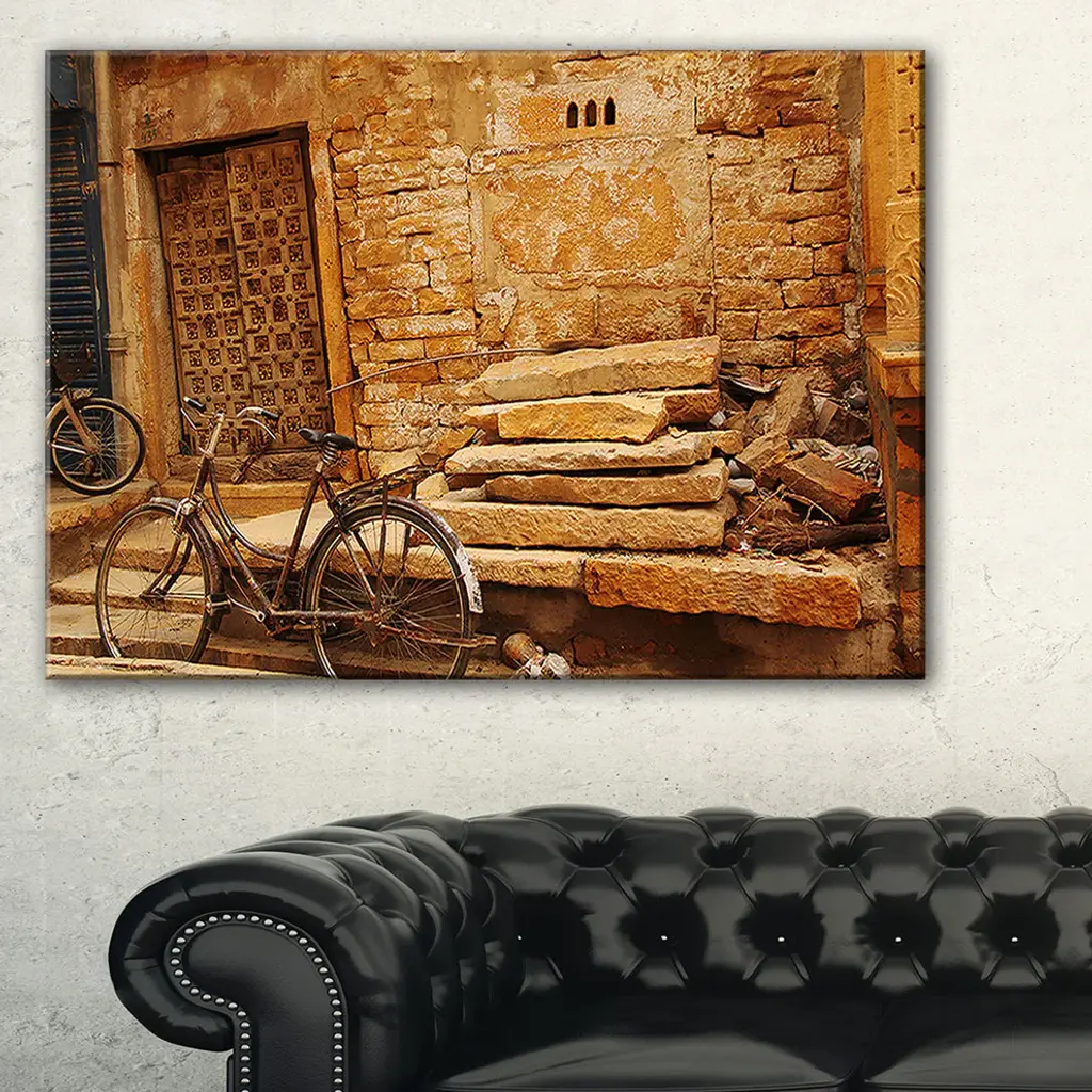 "Bicycle Against Brown Wall" Landscape Canvas Photo Print, 1 Panel, 60"x28"