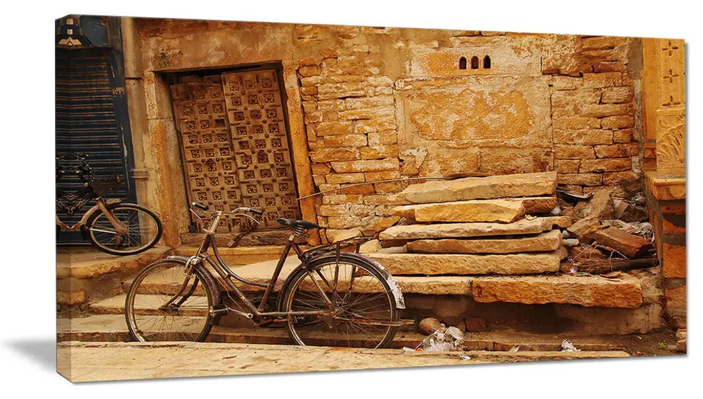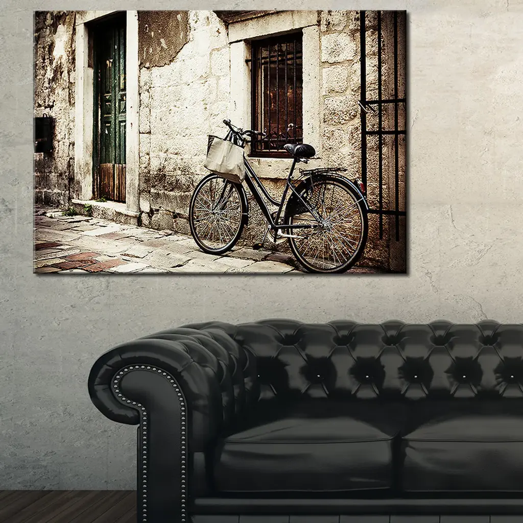 "Bicycle With Shopping Bag" Landscape Canvas Photo Print, 32"x16"