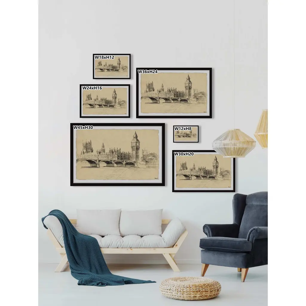 This detailed drawing print features the city of London and Big Ben at the forefront. Proudly printed in the USA, this piece is printed on high quality archive paper and professionally hand-framed. With wall-mounting hooks included, this artful accent is ready to hang up as soon as it reaches your front door. • Top quality Giclee print on high resolution Archive Paper • Hand cut deckled edges • High quality durable non-warping frame • Finished under shatter resistant plexiglass • Arrives ready to hang • Includes a certificate of authenticity • Printed in the USA