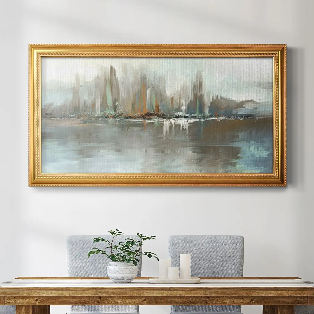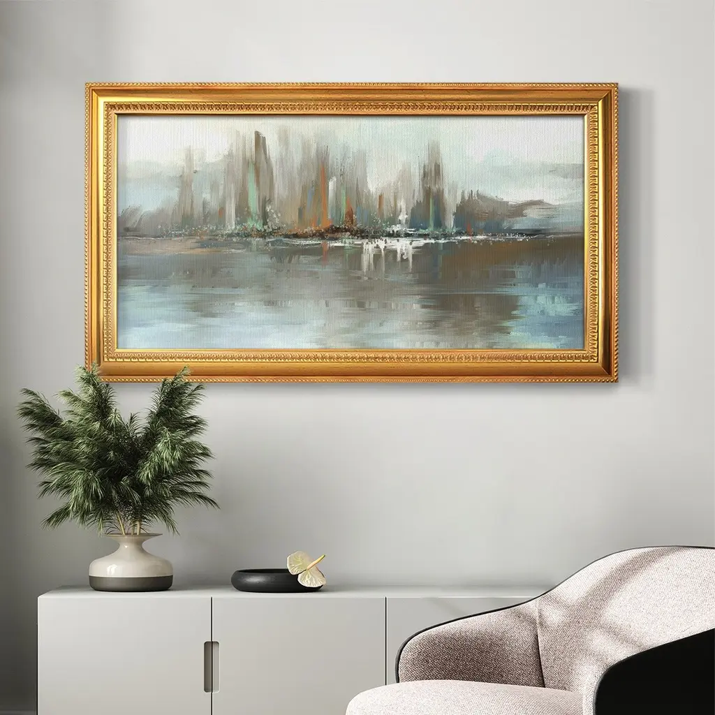 Big City Lights Premium Framed Canvas- Ready to Hang A Premium Framed Canvas created to last. Framed in distressed wood and available in an array of sizes and colors Featuring a beveled a solid wood stretcher bar, each piece comes ready to hand 3 SIZES AVAILABLE 21''X37'' - Overall Size 25''X45'' - Overall Size 29''x53'' - Overall Size Each piece is made to order. Each piece comes with hanging hardware. Made in the USA Ready to Hang Giclee Paper Print Acrylic Glass Beveled Matt Board