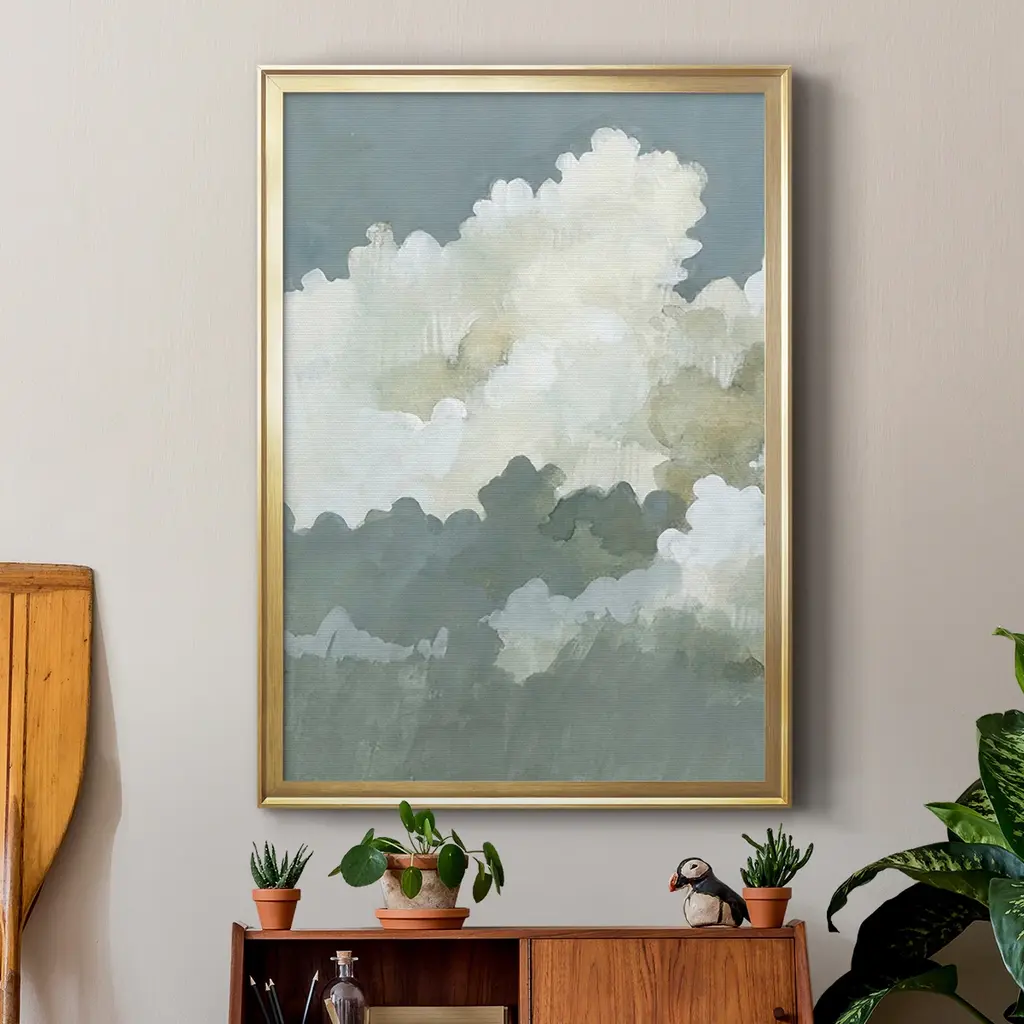 Big Clouds I Premium Framed Print - Ready to Hang A Premium Framed Print created to last. Framed in distressed wood and available in an array of sizes and colors Featuring a beveled a solid wood stretcher bar, each piece comes ready to hand 4 SIZES AVAILABLE 30.5''X42.5'' - Overall Size 26.5'X36.5'' - Overall Size 22.5''x30.5'' - Overall Size 18.5''x24.5'' - Overall Size Each piece is made to order. Each piece comes with hanging hardware. Made in the USA Ready to Hang