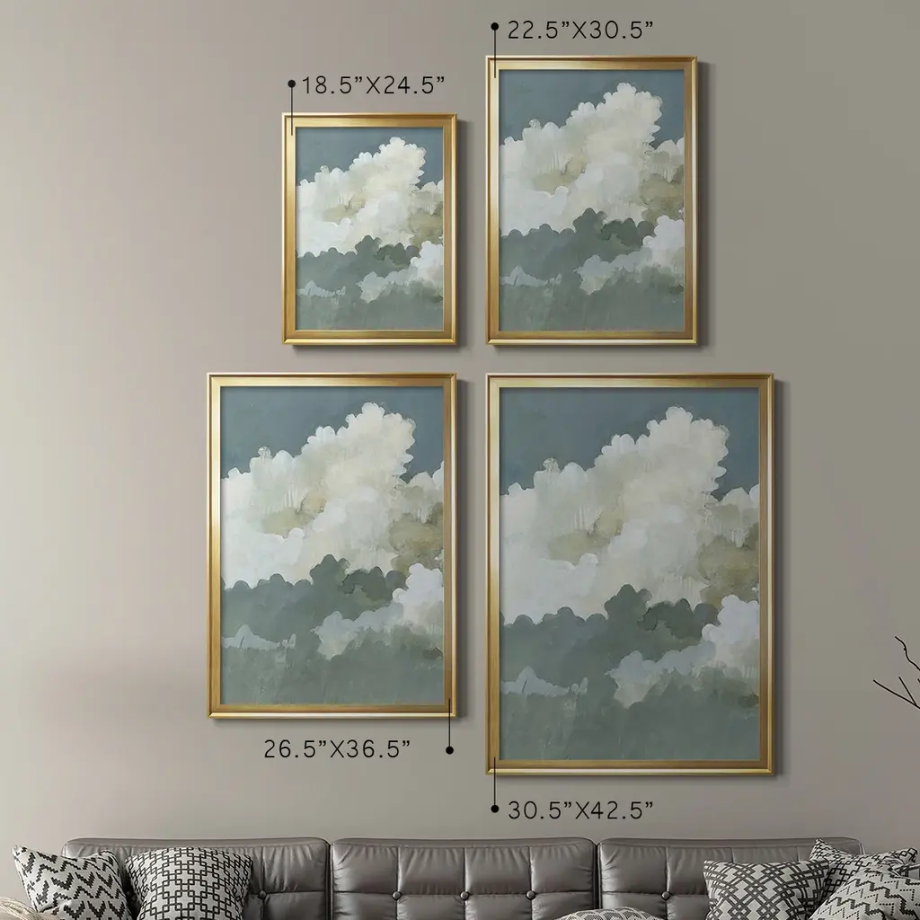 Big Clouds I Premium Framed Print - Ready to Hang A Premium Framed Print created to last. Framed in distressed wood and available in an array of sizes and colors Featuring a beveled a solid wood stretcher bar, each piece comes ready to hand 4 SIZES AVAILABLE 30.5''X42.5'' - Overall Size 26.5'X36.5'' - Overall Size 22.5''x30.5'' - Overall Size 18.5''x24.5'' - Overall Size Each piece is made to order. Each piece comes with hanging hardware. Made in the USA Ready to Hang