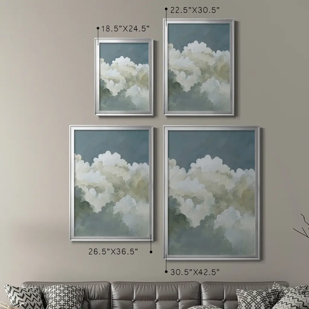 Big Clouds II Premium Framed Print - Ready to Hang A Premium Framed Print created to last. Framed in distressed wood and available in an array of sizes and colors Featuring a beveled a solid wood stretcher bar, each piece comes ready to hand 4 SIZES AVAILABLE 30.5''X42.5'' - Overall Size 26.5'X36.5'' - Overall Size 22.5''x30.5'' - Overall Size 18.5''x24.5'' - Overall Size Each piece is made to order. Each piece comes with hanging hardware. Made in the USA Ready to Hang