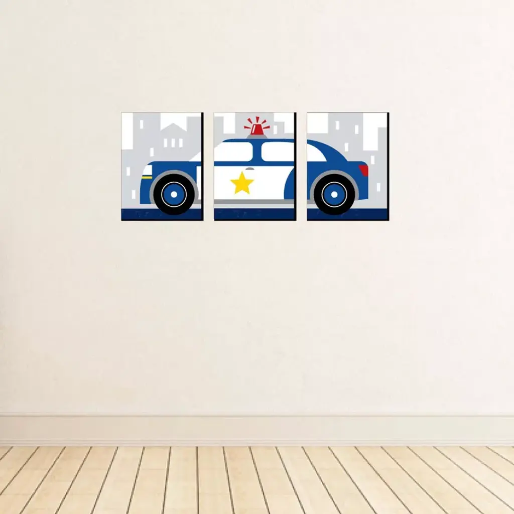 Big Dot Of Happiness Calling All Units - Police - Cop Car Nursery Wall Art And Kids Room Decor - 7.5 X 10 Inches - Set Of 3 Prints