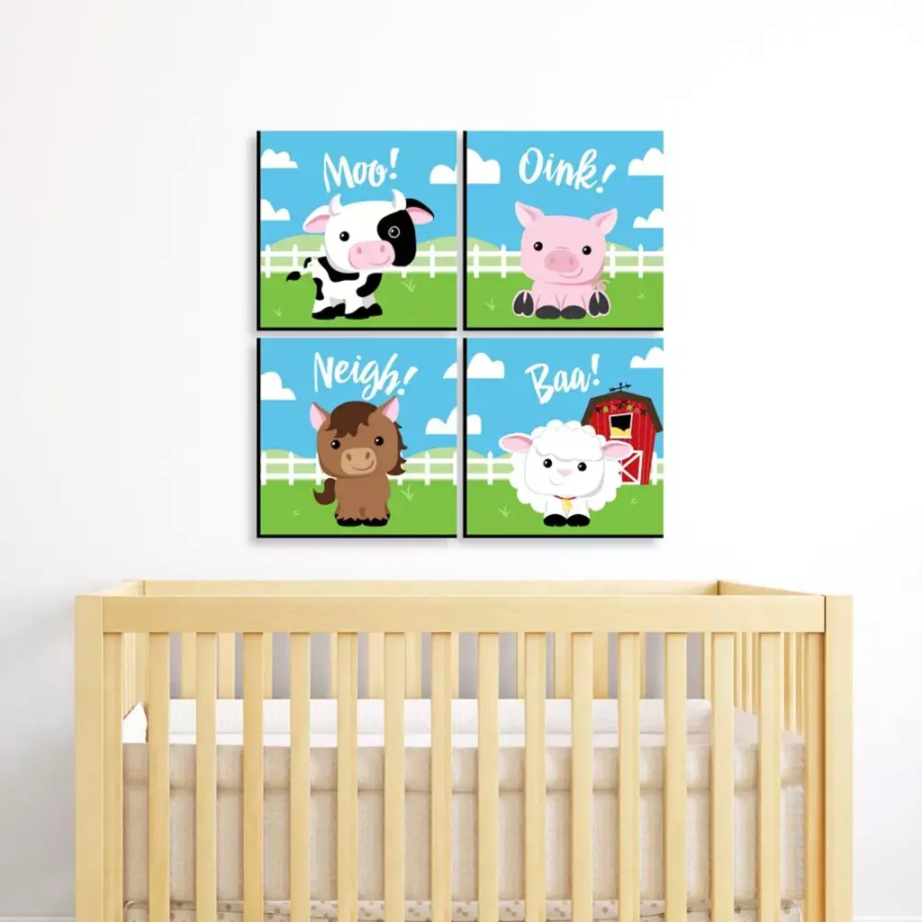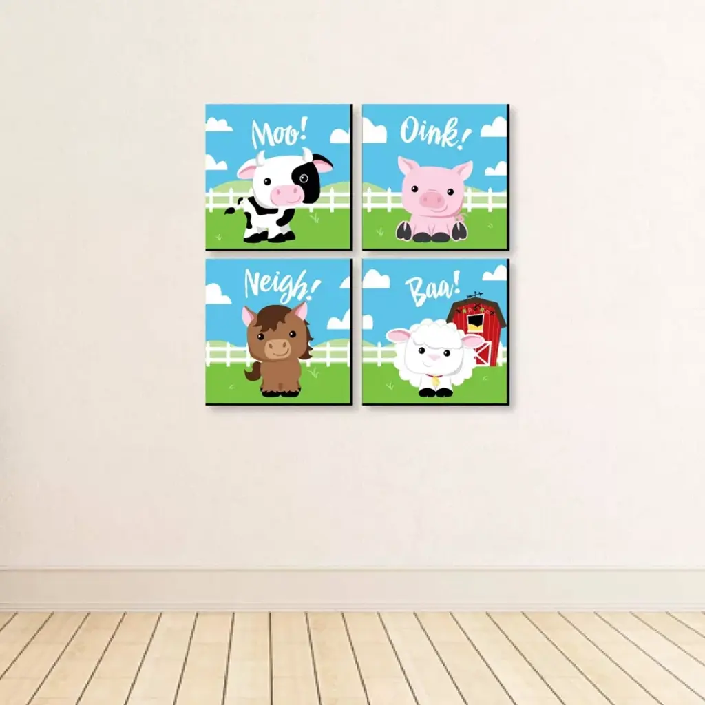 Big Dot Of Happiness Farm Animals - Barnyard Kids Home Decor - 11 X 11 Inches Nursery Wall Art - Set Of 4 Prints For Baby's Room