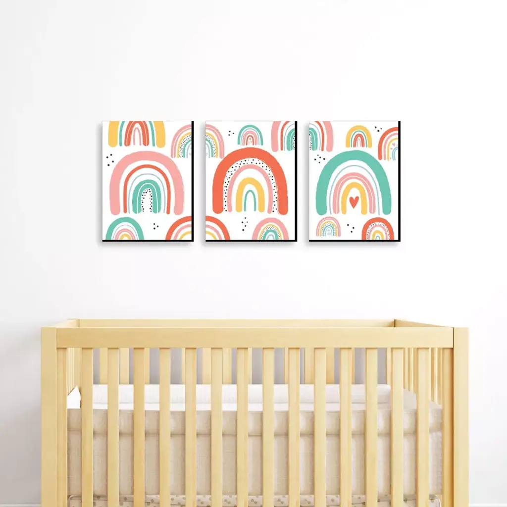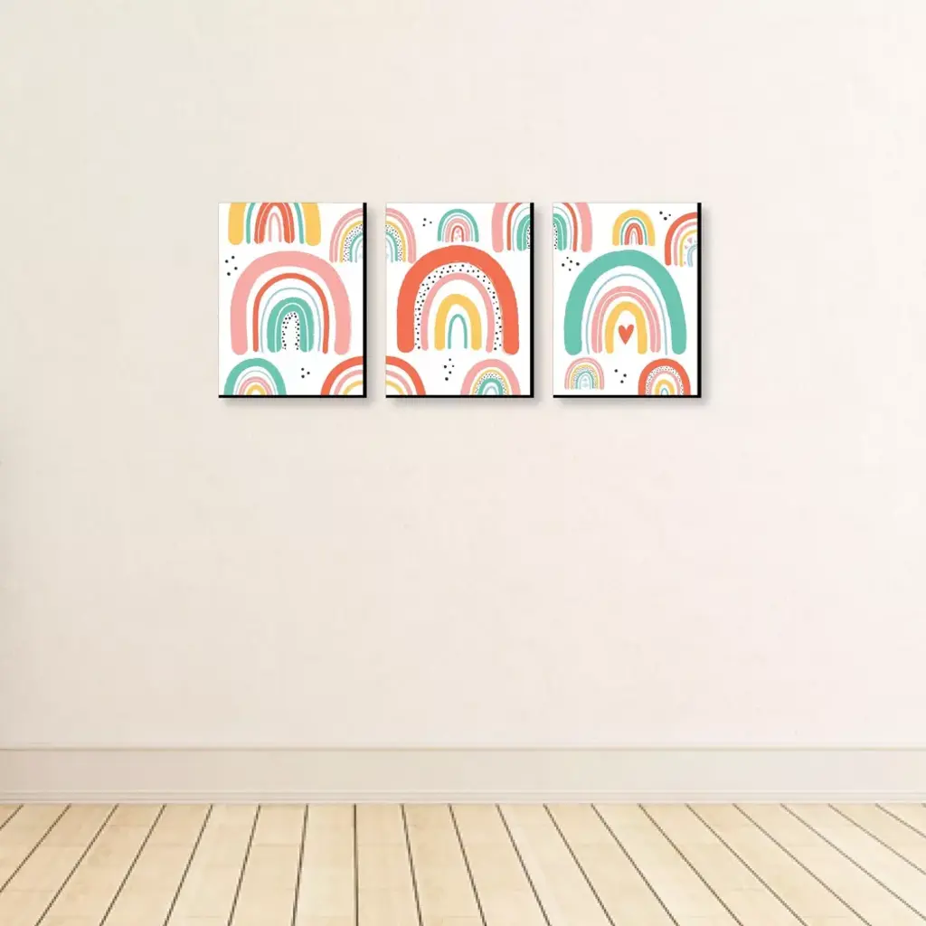 Big Dot Of Happiness Hello Rainbow - Boho Nursery Wall Art And Kids Room Decor - 7.5 X 10 Inches - Set Of 3 Prints