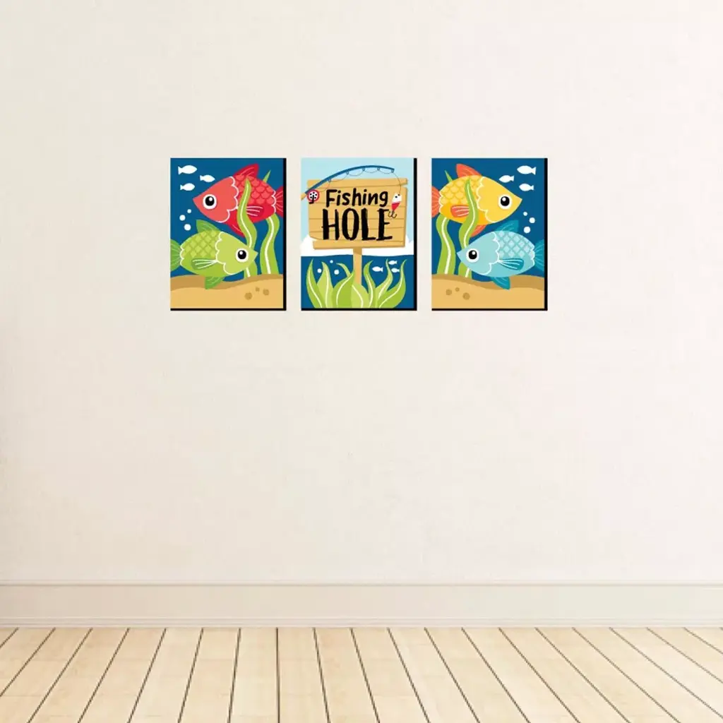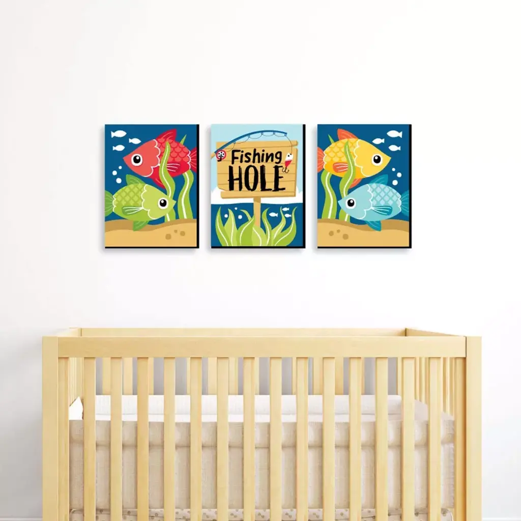 Big Dot Of Happiness Let's Go Fishing - Fish Themed Nursery Wall Art And Kids Room Decor - 7.5 X 10 Inches - Set Of 3 Prints