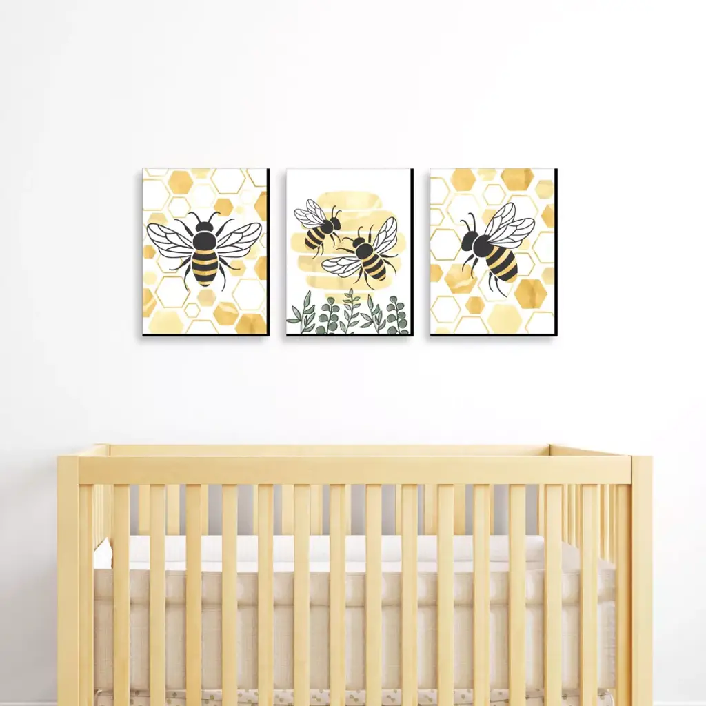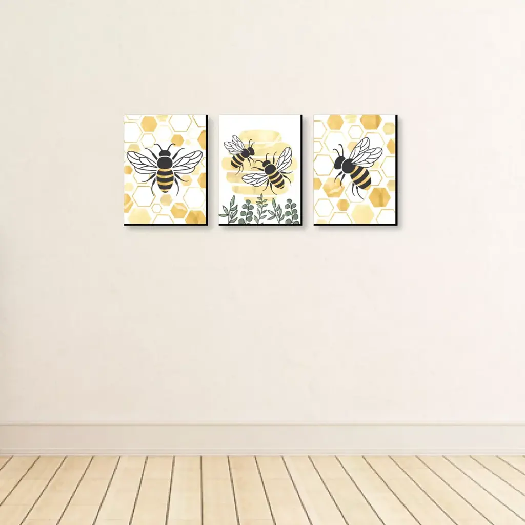 Big Dot Of Happiness Little Bumblebee - Bee Nursery Wall Art And Kitchen Decor - 7.5 X 10 Inches - Set Of 3 Prints