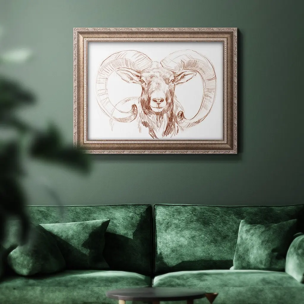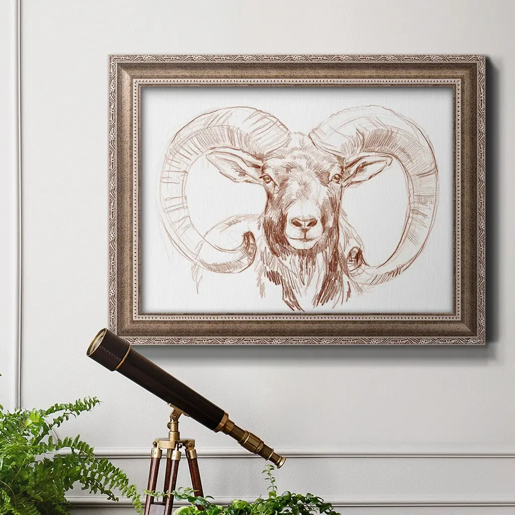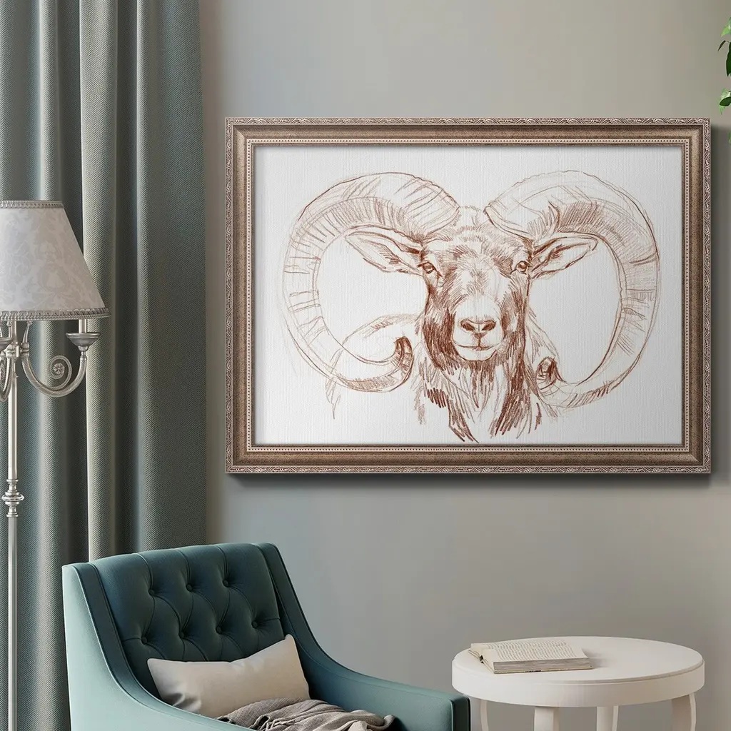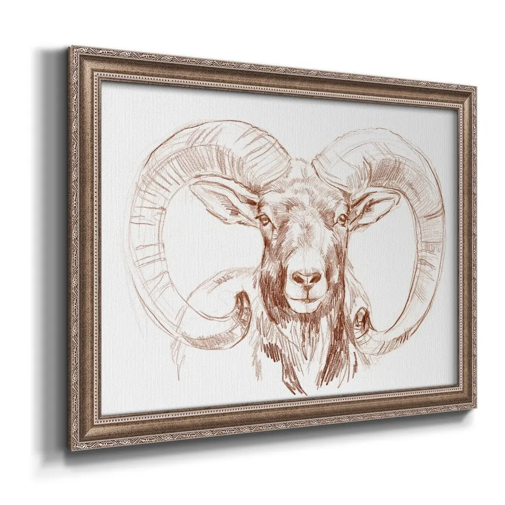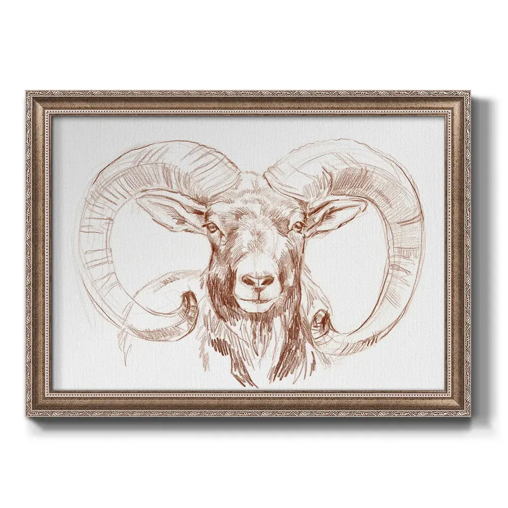 Big Horn Sheep I Premium Framed Canvas- Ready to Hang A Premium Framed Canvas created to last. Framed in distressed wood and available in an array of sizes and colors Featuring a beveled a solid wood stretcher bar, each piece comes ready to hand 3 SIZES AVAILABLE 16''X20'' - Overall Size 18'X27'' - Overall Size 24''x36'' - Overall Size Each piece is made to order. Each piece comes with hanging hardware. Made in the USA Ready to Hang Giclee Paper Print Acrylic Glass Beveled Matt Board