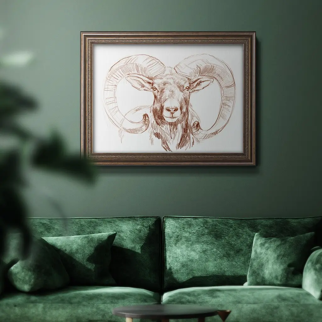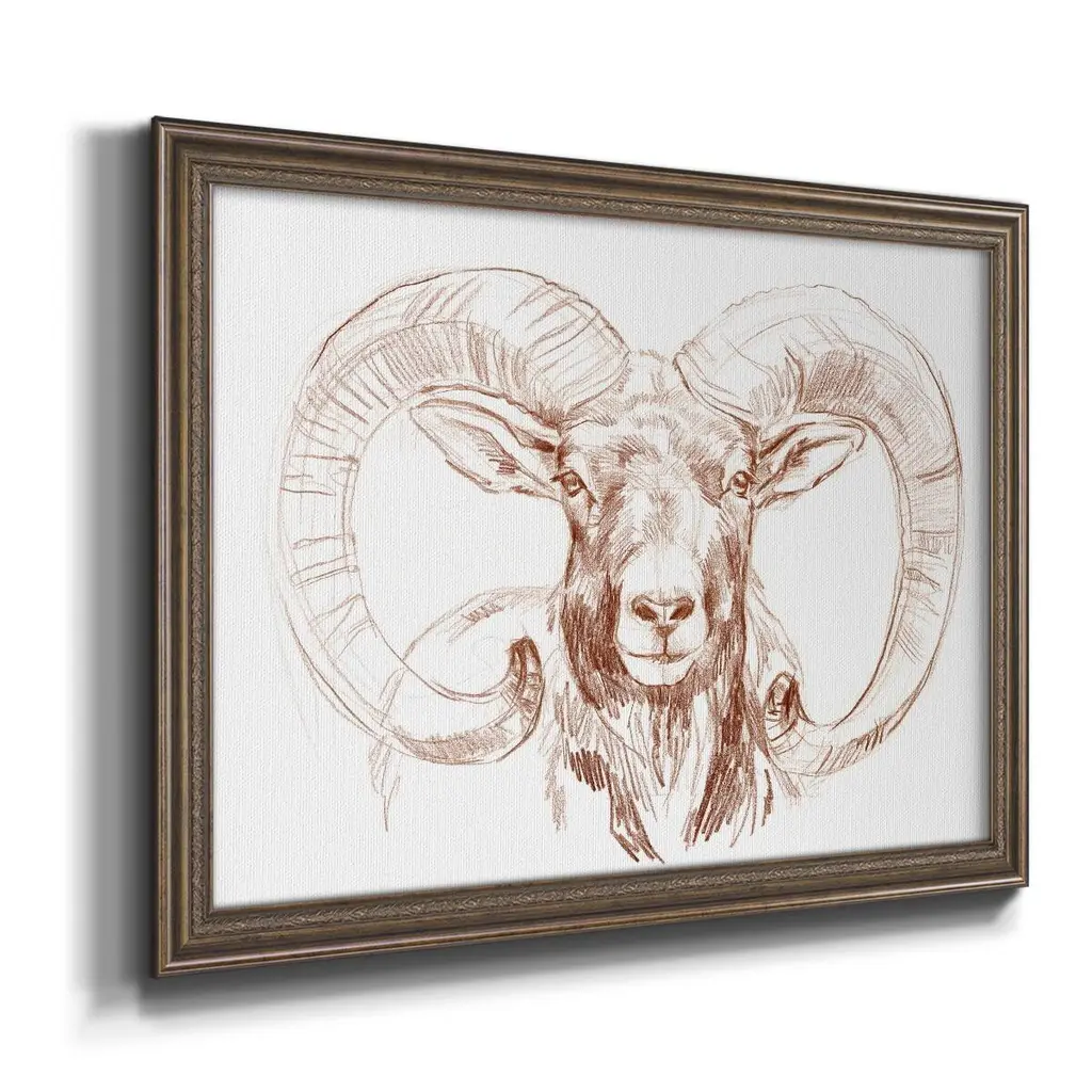 Big Horn Sheep I Premium Framed Canvas- Ready to Hang A Premium Framed Canvas created to last. Framed in distressed wood and available in an array of sizes and colors Featuring a beveled a solid wood stretcher bar, each piece comes ready to hand 3 SIZES AVAILABLE 16''X20'' - Overall Size 18'X27'' - Overall Size 24''x36'' - Overall Size Each piece is made to order. Each piece comes with hanging hardware. Made in the USA Ready to Hang Giclee Paper Print Acrylic Glass Beveled Matt Board