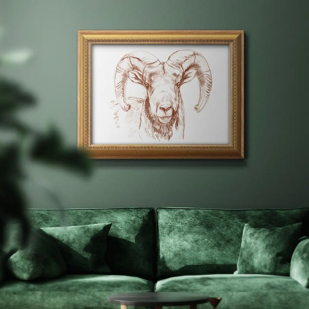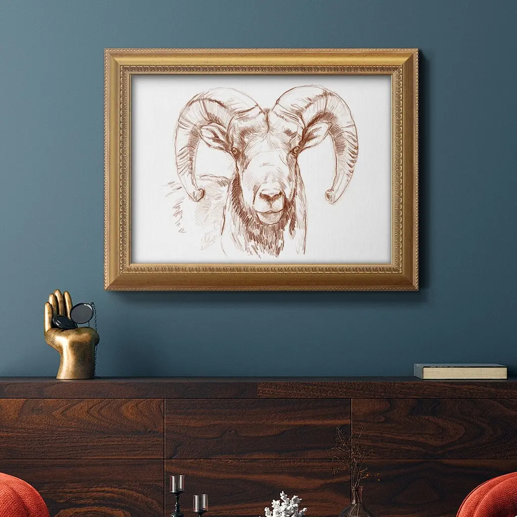 Big Horn Sheep Ii Premium Framed Canvas- Ready To Hang - 18x27 - Gold
